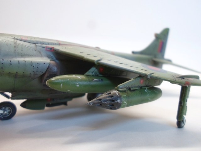 В целом симпатично, но если этот борт участник войны за Фолкленды зачем ему учебные бомбы? И маркировку эскадрильи (полоски цветные на носу) боевые борты тоже не несли.