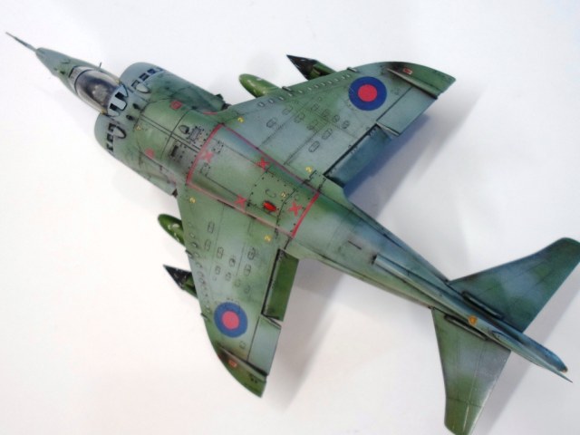В общем , впечатление положительное. Но ободранность и грязь явно лишние. Зелёный цвет должен быть темнее. Задние кромки крыльев выглядят толстовато. Сопла , кажется , должны поворачиваться синхронно. У вас передние- на подъём, задние - в маршевом положении. Да и подвески многовато - в таком виде он вертикально уже не взлетит...