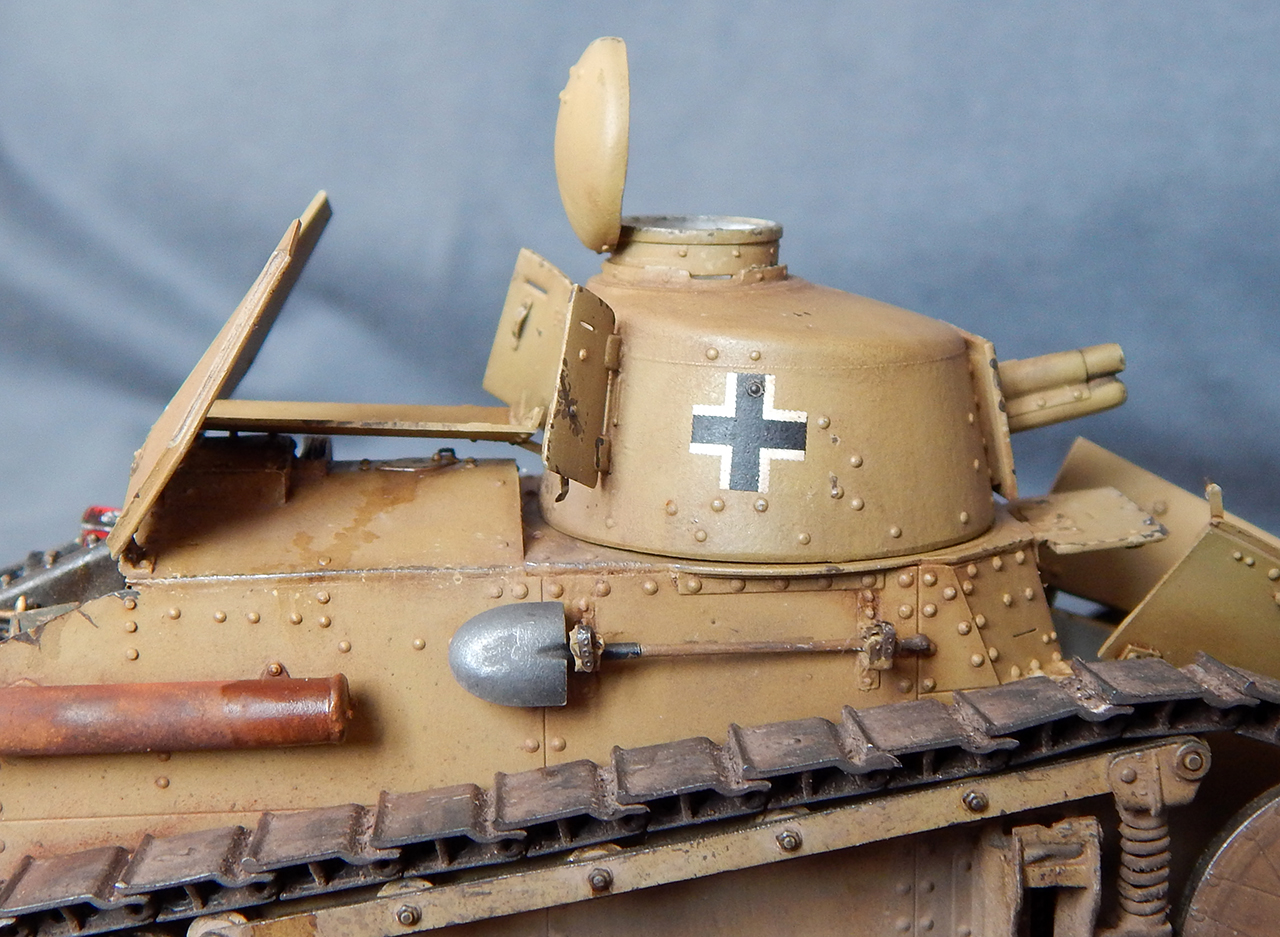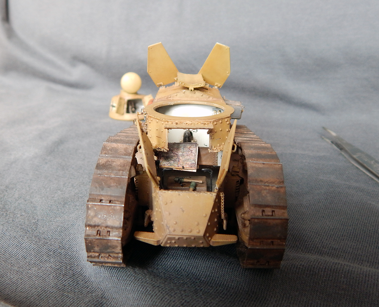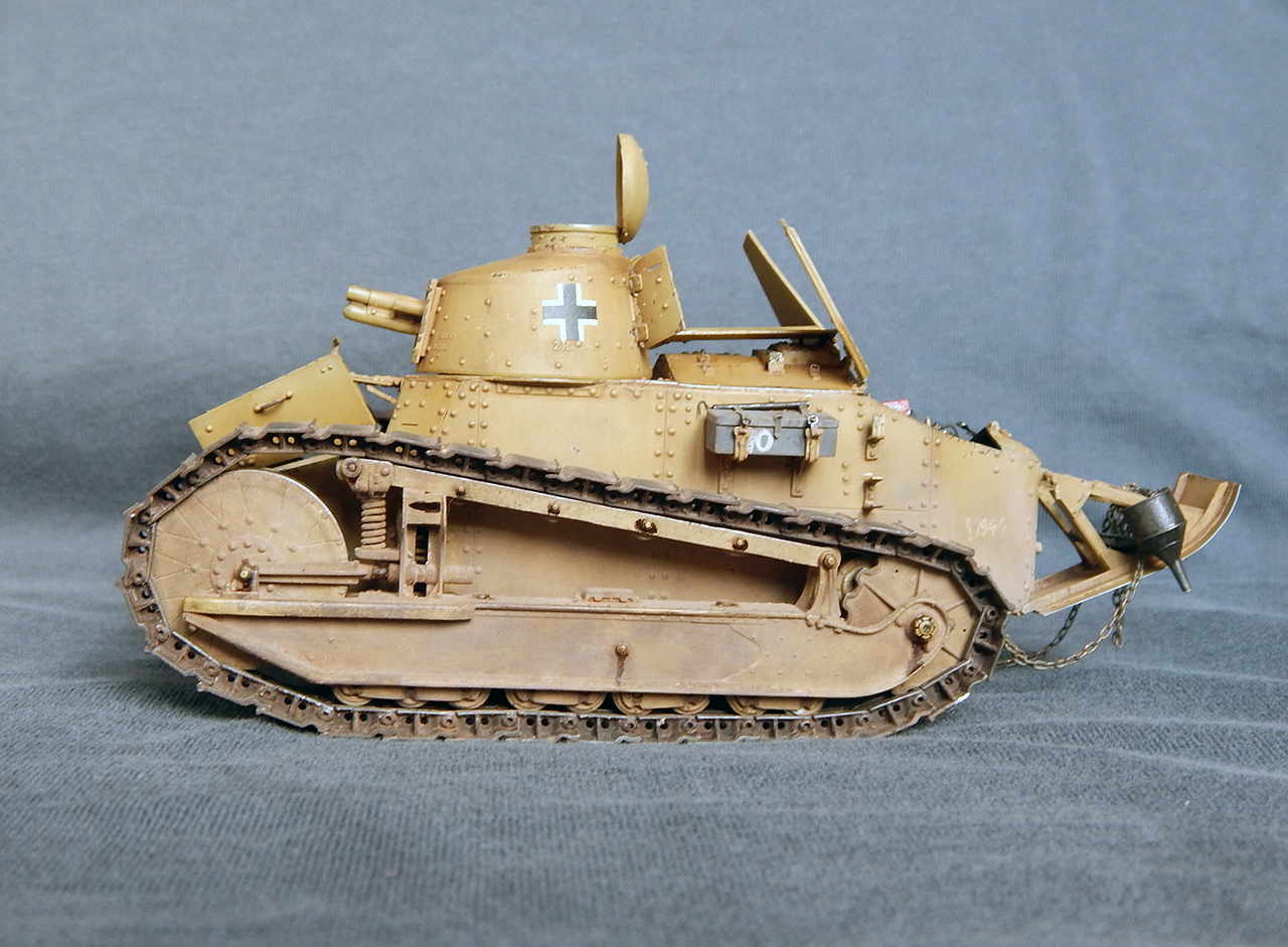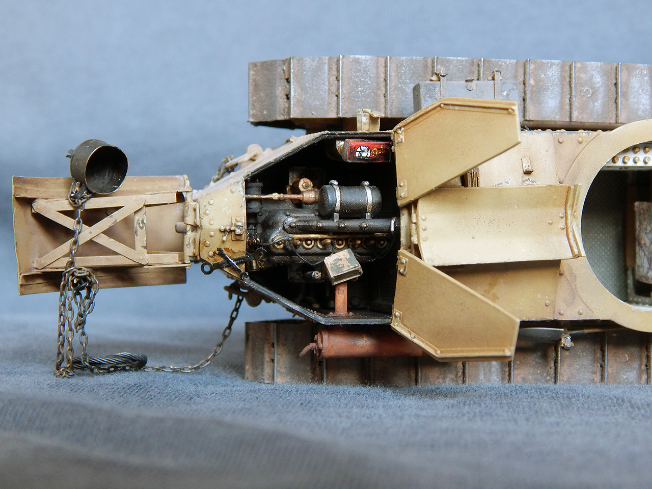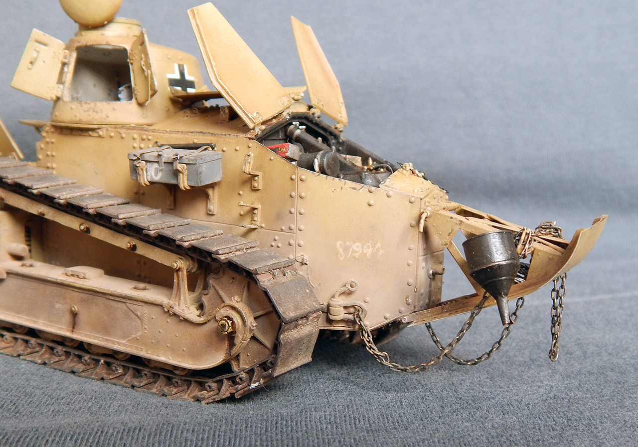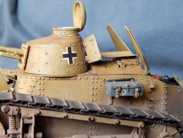 Маркировка на башне сухие декали Wilder, на бортах и ящике кистью белой Vallejo. Тонировку начал с Mig'овского коричневого фильтра для желтой техники. Затем выцветания маслом 502 Abteilung. Смывка Mig Brown Wash. Затем сделал затемнение маслом Wash Brown. Сколы Vallejo. Пигменты Wilder и Mig. Потеки ГСМ 502Abt Engine Grease, AMMO Fuel Stains и Mig Oil and Grease Stains Mixture.