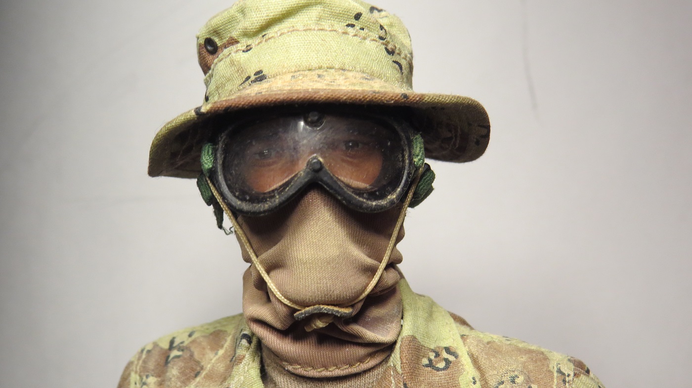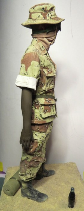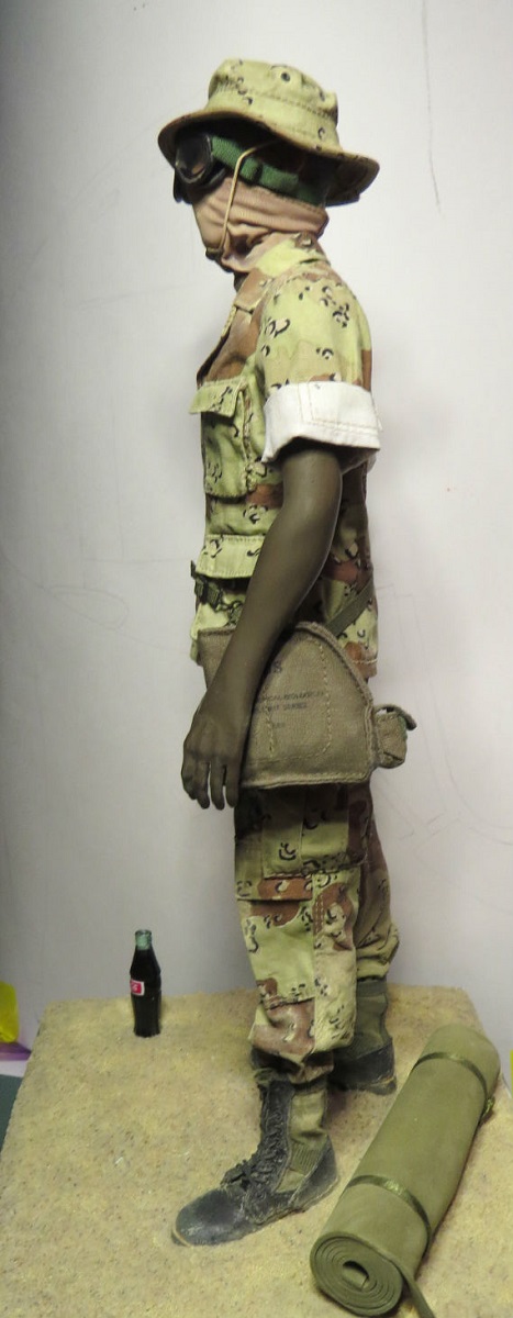 Выглядит конечно прикольно, но соглашусь с Дмитрием Иванченко. Вопрос автору по очкам - ремень очков такой и должен быть или это от себя?тоже по сумке на бедре-она именно так должна крепитсья?и для чего она?хотя-бы название(у них у всех есть)-просветите темного человека)). И еще - если подразумевается что боец из иракской кампании, то нашивок не хватает.