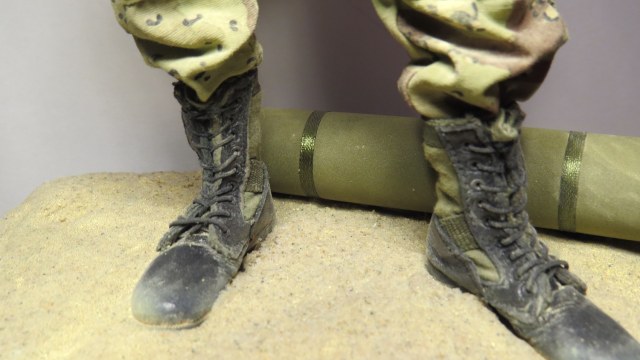 Еще есть небольшой косячок в том, что американцы штаны в ботинки не заправляют. У них штанина стягивается вокруг берца специальной резинкой, таким макаром что штанина завернута внутрь и резинка внутри штанины. Вот блин сам не понял чего написал ))))))))