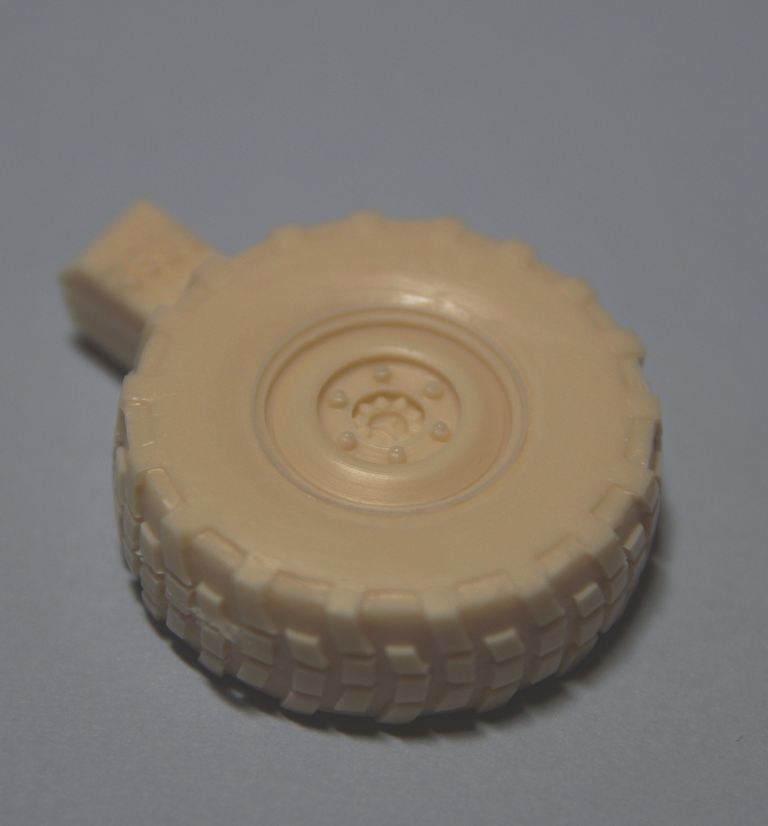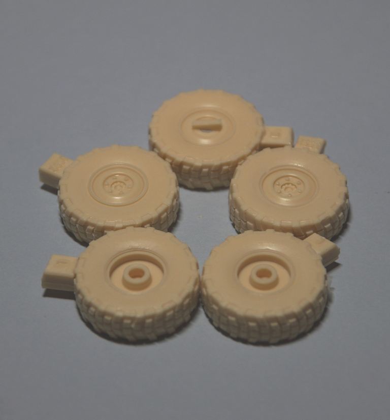 Итак имеем в наличии целлофановый пакетик с пятью колесами для грузовика MB UNIMOG выпускаемого фирмой Revell в 35ом масштабе.