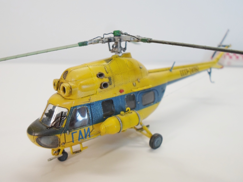Красивый "Гаишник" получился! Втулку НВ, как уже не раз писали - нужно было от Sky-High взять и вопрос по лопастям - с зеленым цветом не встречал (ниже фото похожего Ми-2). Модель понравилась. Я за галерею!