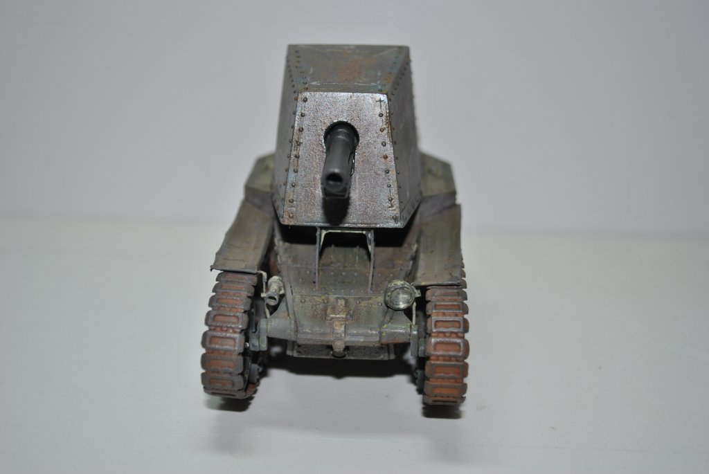 Добрый день. Предлагаю вашему вниманию конверсию танка Т-18. Серийный танк ,но вместо башни в передней части корпуса сделал из пластика рубку, в нее установлено 76,2-мм орудие сделано также из пластика, переделан хвост, крылья и всякие разные мелочи. Окрашен AK Interactive, пигменты имитация ржавчины и пыли .