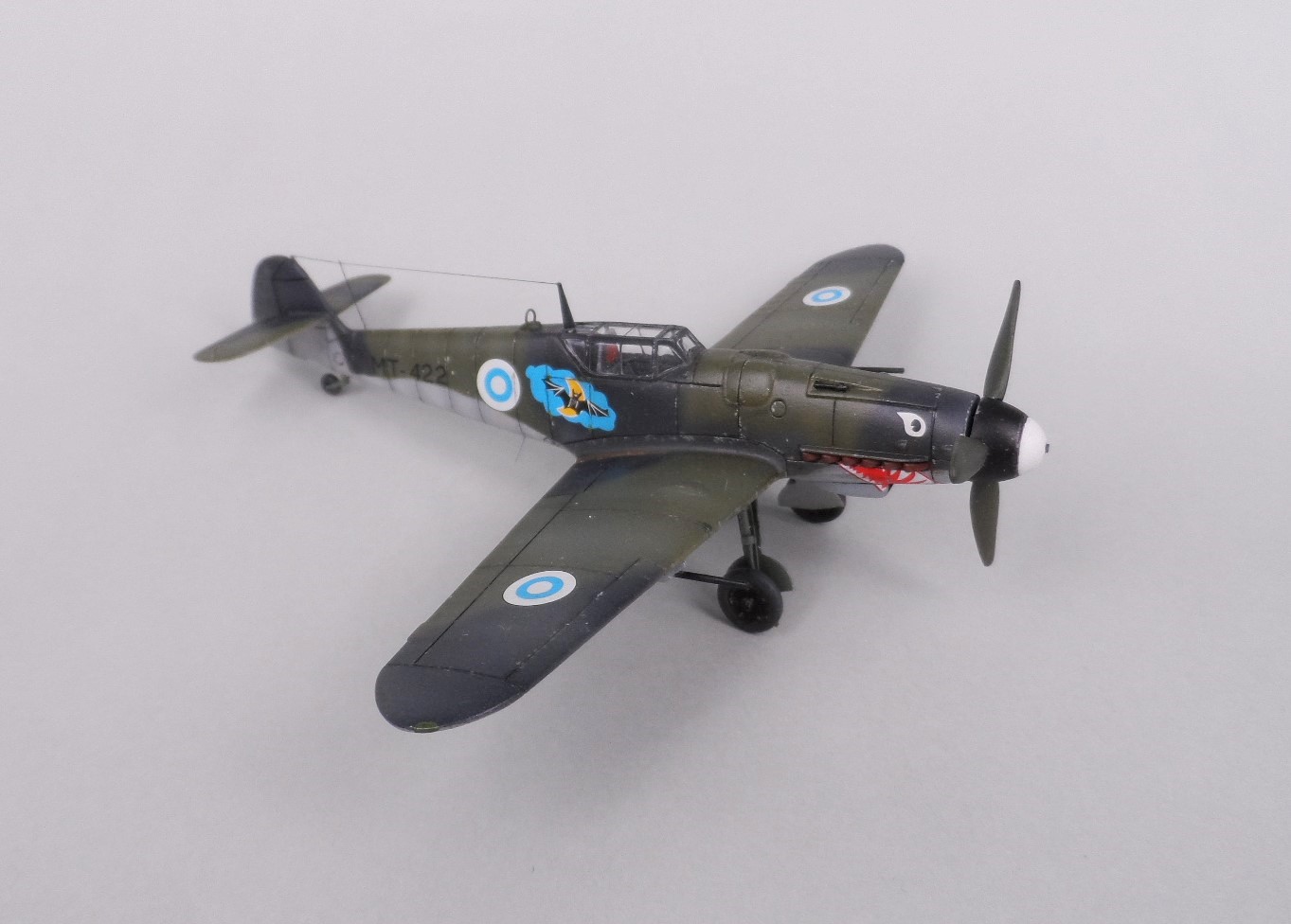 Как вспоминал летавший на МТ-422 ст.сержант Бьёр Хиелм он в феврале 48-го года, с разрешения командира HLeLv 31, нарисовал на своём истребителе «пасть». А 6 марта 1948 года в Утти с инспекционной поездкой прибыл командующий ВВС генерал-лейтенант Франц Хелминен. И когда тот прошелся вдоль линейки «мессеров», то по поводу МТ-422 высказался в духе: «…убрать это безобразие, а то торчит как распухший палец!» - пасть закрасили.