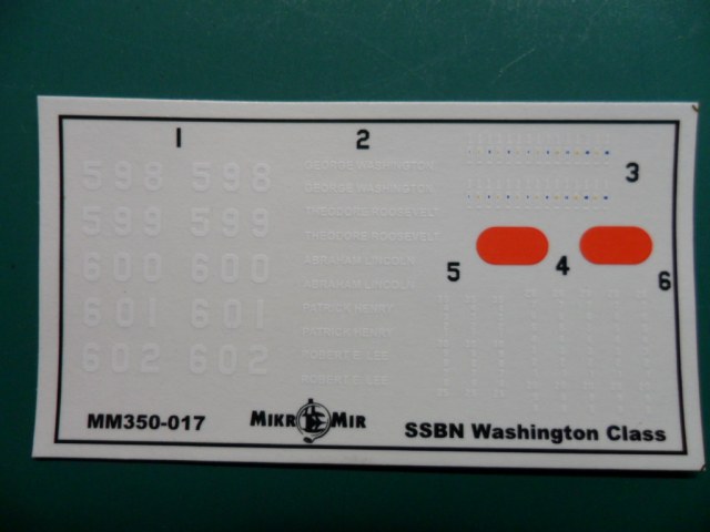 Декаль набора стандартная для амеровских субмарин, т.е. всё что надо там есть (я сделал и фотографию и скан, чтобы было виднее всю мелочевку изображений на деке). Более того, можно налепить ракет-бутылочек на ограждение рубки – именно так сейчас выглядит рубка этой ПЛАРБ установленная в Гротоне.