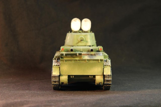 Шикарный аппарат. Про габариты уже сказали, это легко исправить, жаль только что про фары ФБС написал автор, но на машине не сделал. Тем более что кормовой пулемет выполнен. Вместе с чем, танк превосходен! Чувствуется в машине душа, а это многое. Поздравляю с отличной моделью.