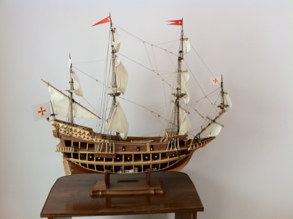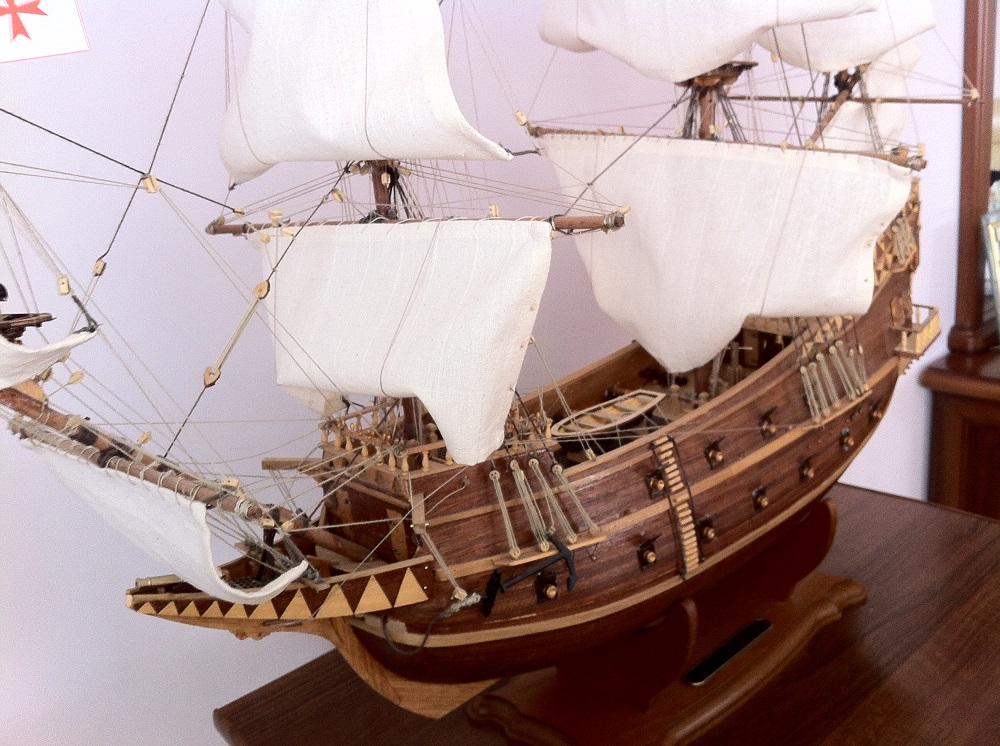 Собирать по детальке в неделю два года и не забросить... Я бы не смог. Помарок конечно много, но сколы и сейчас подкрасить не поздно и капли клея снять. Если бы не паруса в непонятном положении... Но все равно для первого раза неплохо. В целом вполне смотрится.