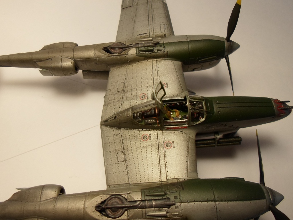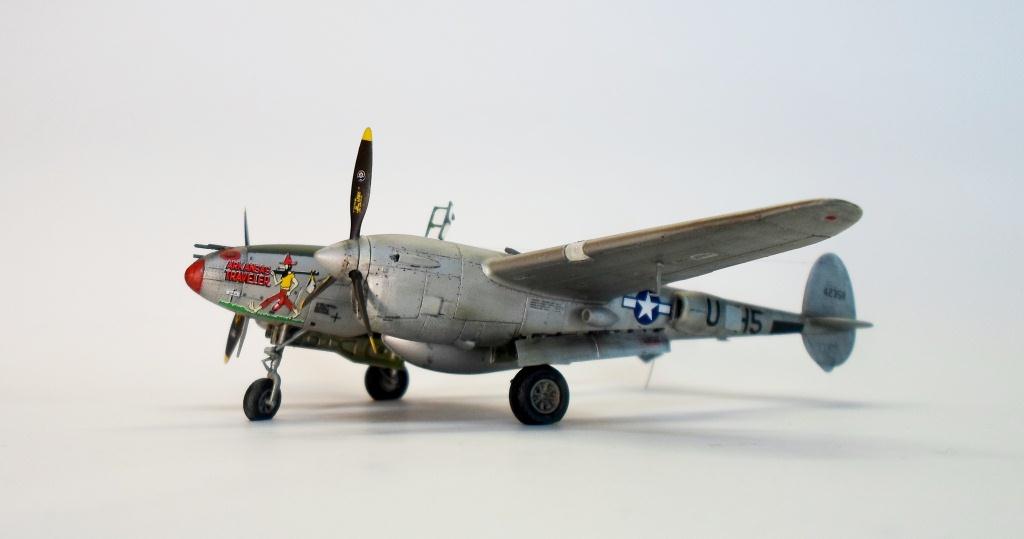 Всех снова приветствую!Покажу вам ещё одну свою модель.Собирал не давно.Хотелось что нибудь для отдыха.Порывшись в закромах,пал выбор на Лайтнинг.Сказал;хватит,залежался.Ну и собрал за неделю.Из дороботок-щели в хвостовых заборниках (спереди),отверстия в мелких заборниках,проработана кабина,проклепал.Оснавной цвет-алюминевая супер №6 и сталь супер №7 от ЗВЕЗДЫ.Остальные цвета подбирал.На ВАШ суд,коллеги.