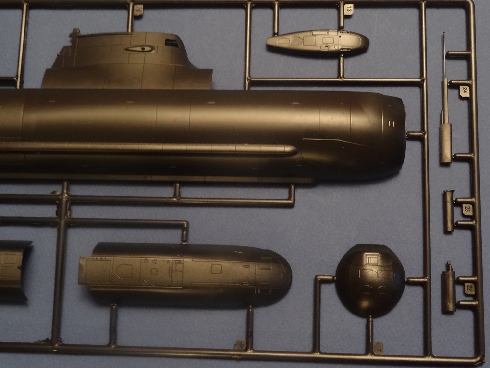 Особо порадовала расшивка корпуса и рубки,всё выделено очень хорошо(хотя с прототипом пока не смерил ). Облой присутствует лишь на нескольких деталей,толкатели не обнаружены.