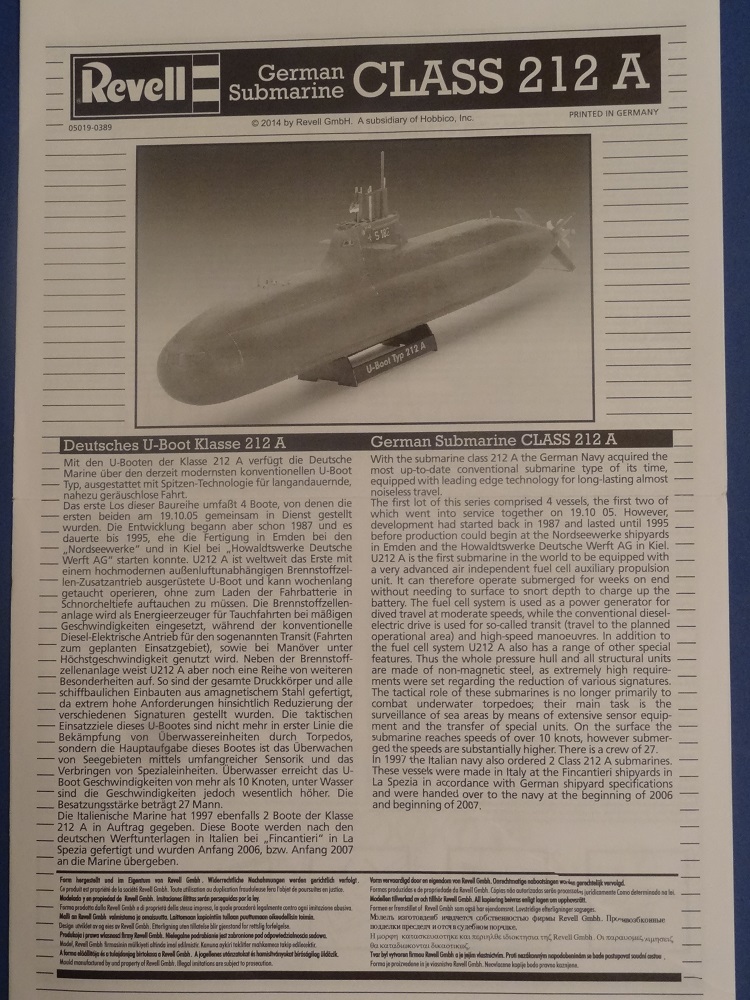 Решил сделать обзор на подводную лодку тип-212 (212А) от производителя Revell в масштабе 1/144.