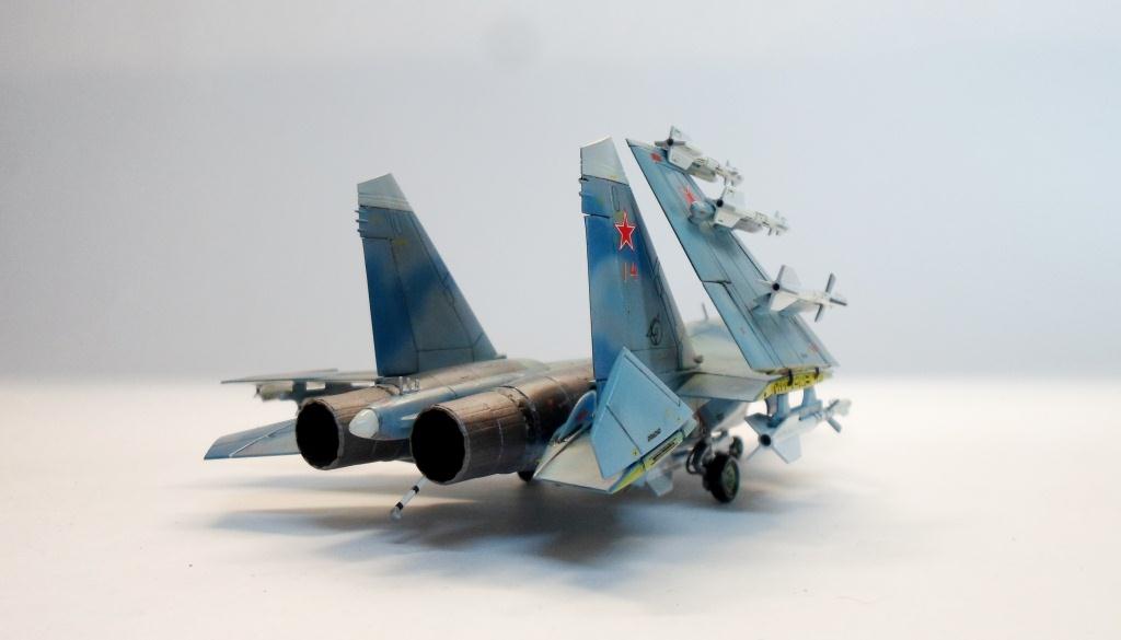 Замечания такие: хвостовая балка не удалась (по форме не вышла), "пилотки" на килях надо малость подрезать, отсутствуют элероны. Что-то не то со стабилизаторами (не пойму в чем дело, либо линия складывания смещена, либо они короче чем нужно). Ну и под номером 14 Су-33 никогда не было.