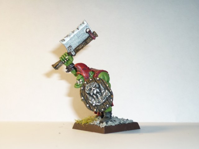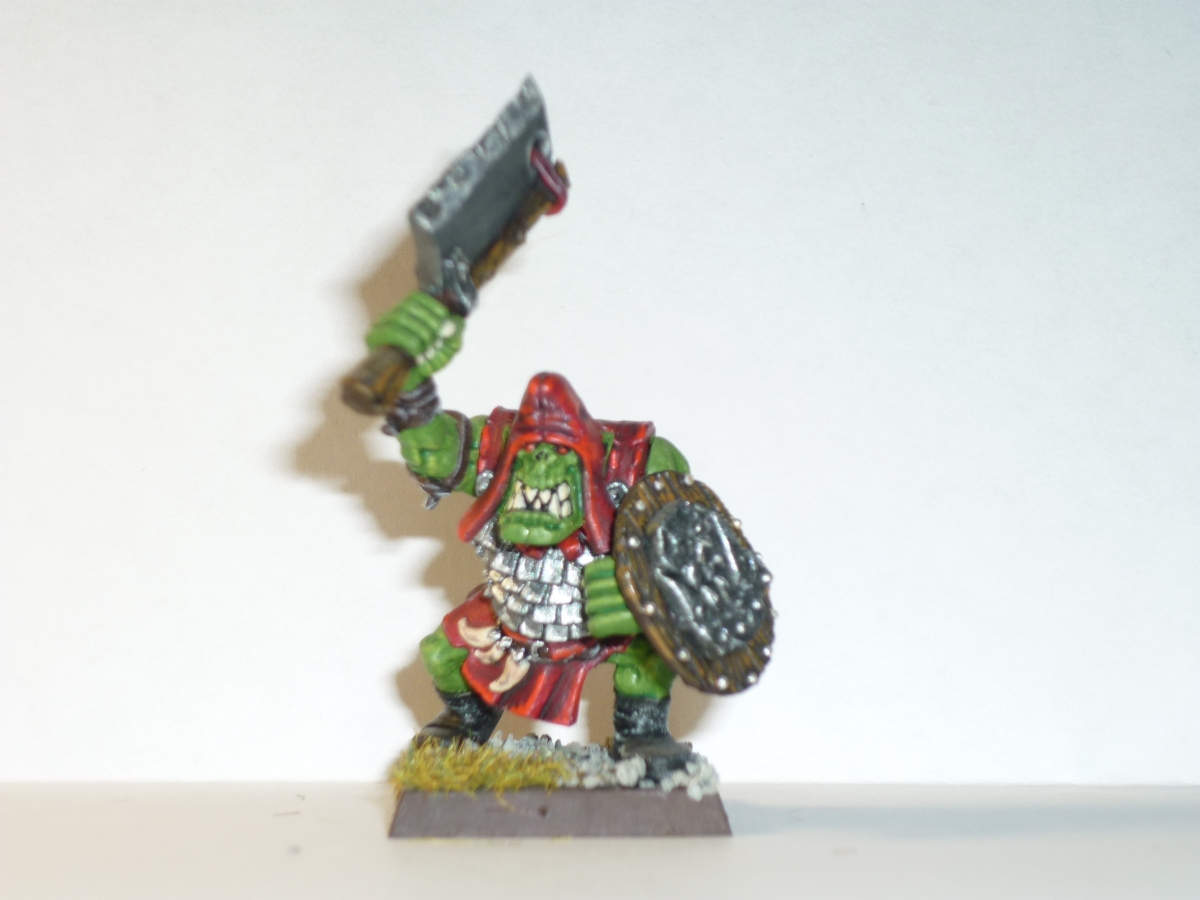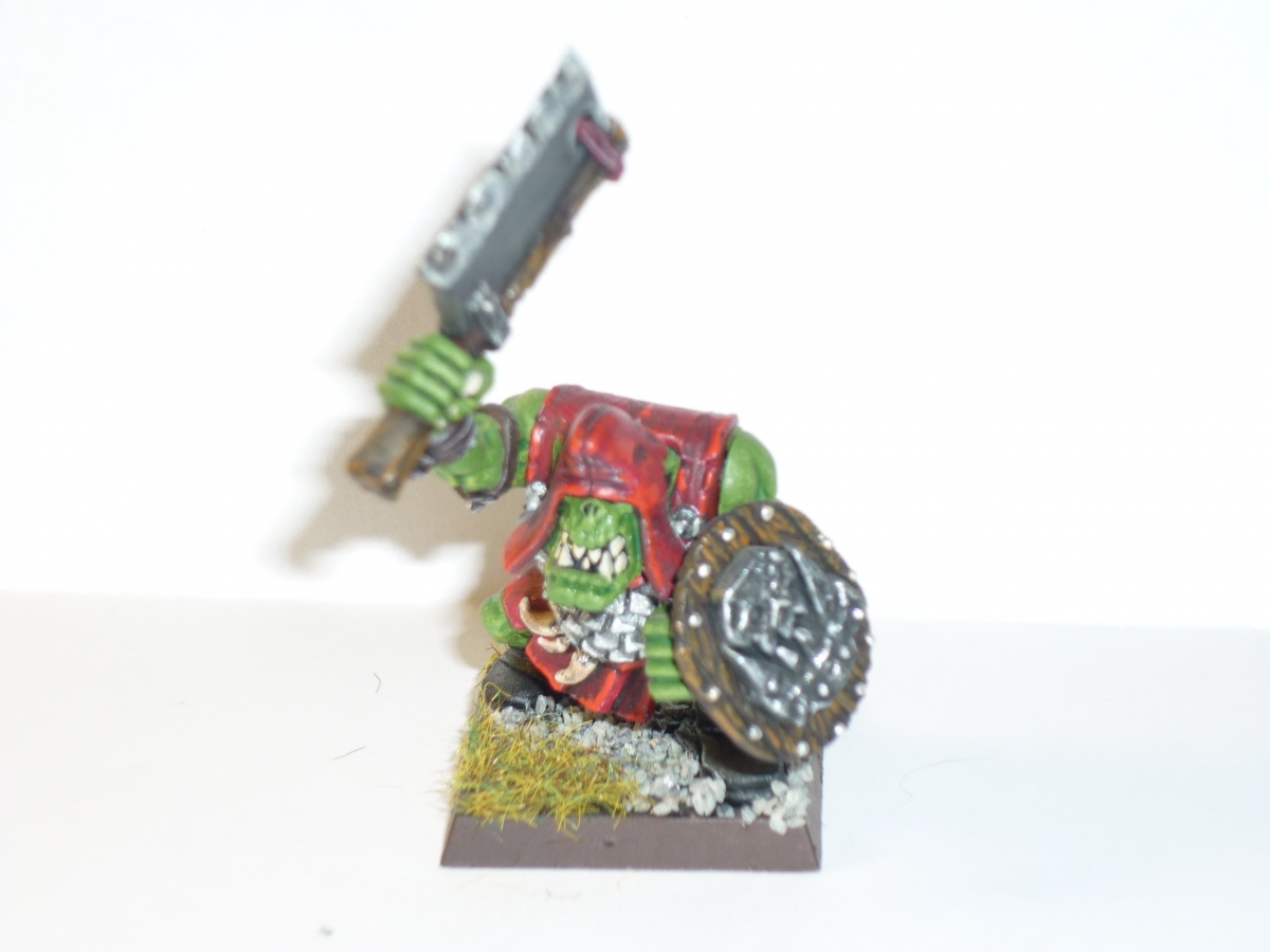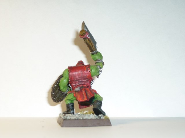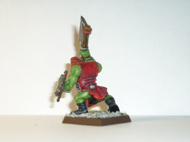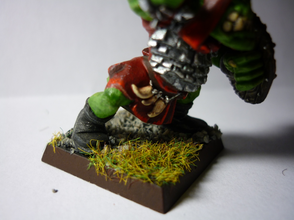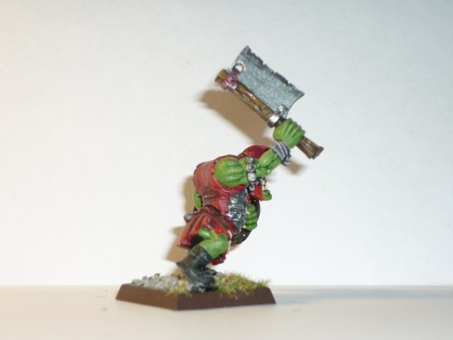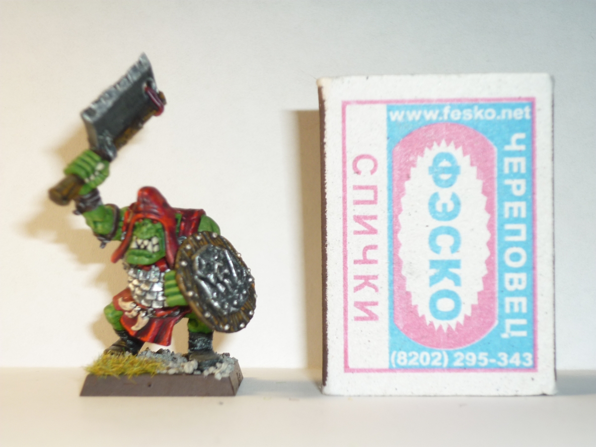 Один из девятнадцати орков, находившихся в коробке в "расчлененном" состоянии. Материал - пластик. Окрашено акрилом "Valejo" и "Звезда". Подставка оформлена с помощью песка и искусственного флока.