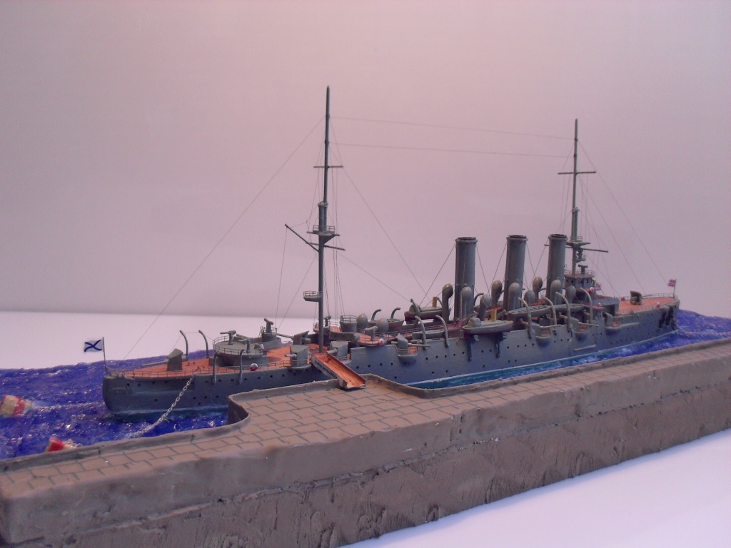 По поводу человечков, у Эдуарда есть крашенные фототравленные моряки в 1/350, учитывая что у Авроры масштаб 1/400 смотреться на набережной они будут нормально.