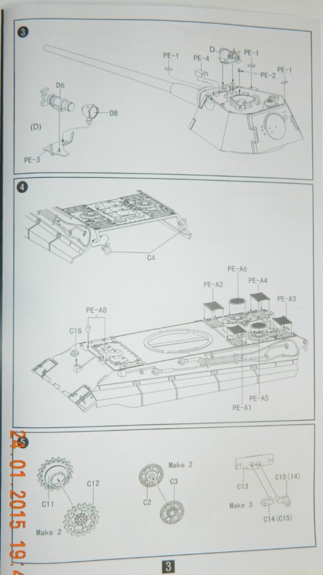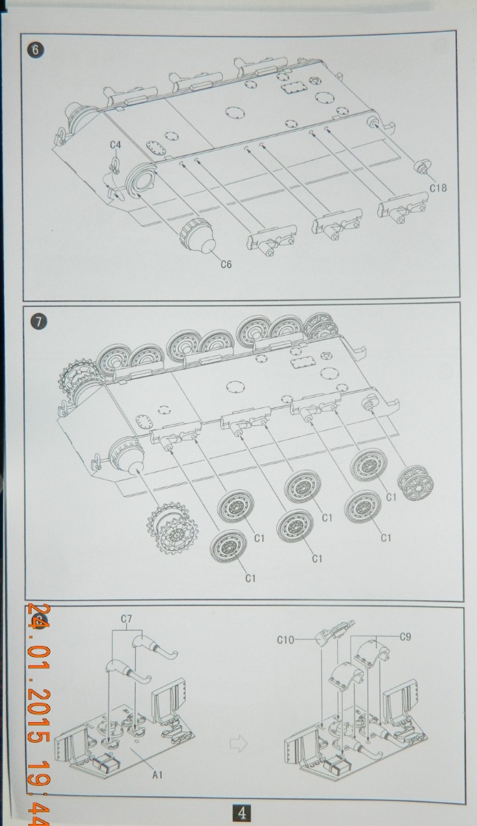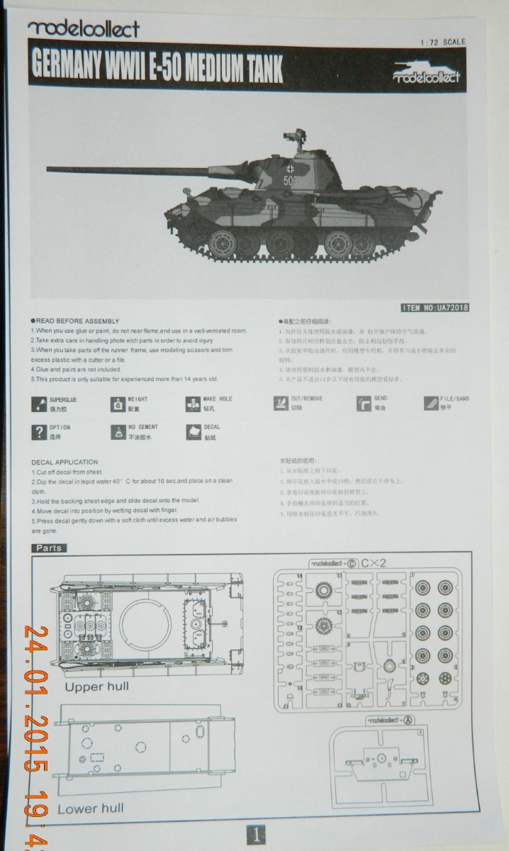 Коробка с приличной типографией, внутри один пакетик с литниками серого цвета. При детальном осмотре брака литников не обнаружено. Фото травление сеток МТО и других мелочей, в придачу точеный ствол. Траки одной лентой, немного жестче чем у Dragon. Декаль на несколько видов модели. Инструкция вполне читабельна и исходя из опыта с его старшим братом Е-75, немного не детальна. Просьба сильно не ругайтесь :)