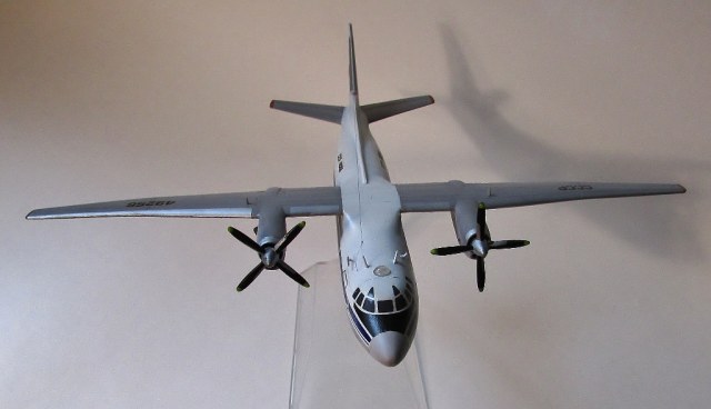 Движки голые совсем, нет тонировки, отсутствуют воздухозаборники, их там на движках хватает, так-же нет лючков, на обтекателях винтов видны "ляпы, расшивки кое-где совсем не видно, кажется как-будто залитая, в целом окрашен аккуратно, для сувенирной офисной модели не плохо..