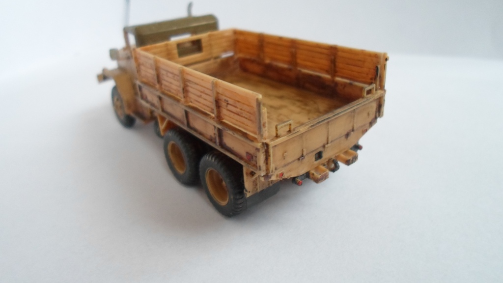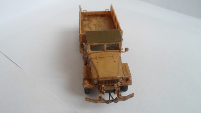М35, изкоробка. От себя добавил: фильтр на капоте справа, опоры брызговиков сзади, трос на лебедке. Так как декали пришли в негодность,сделал грузовик видавший виды.