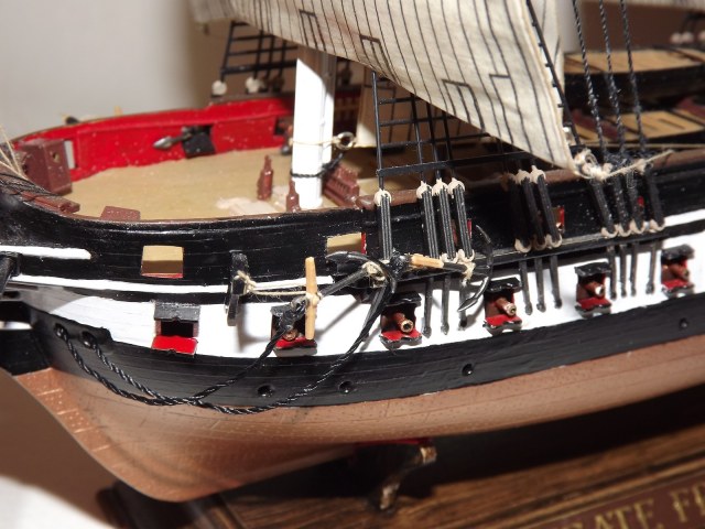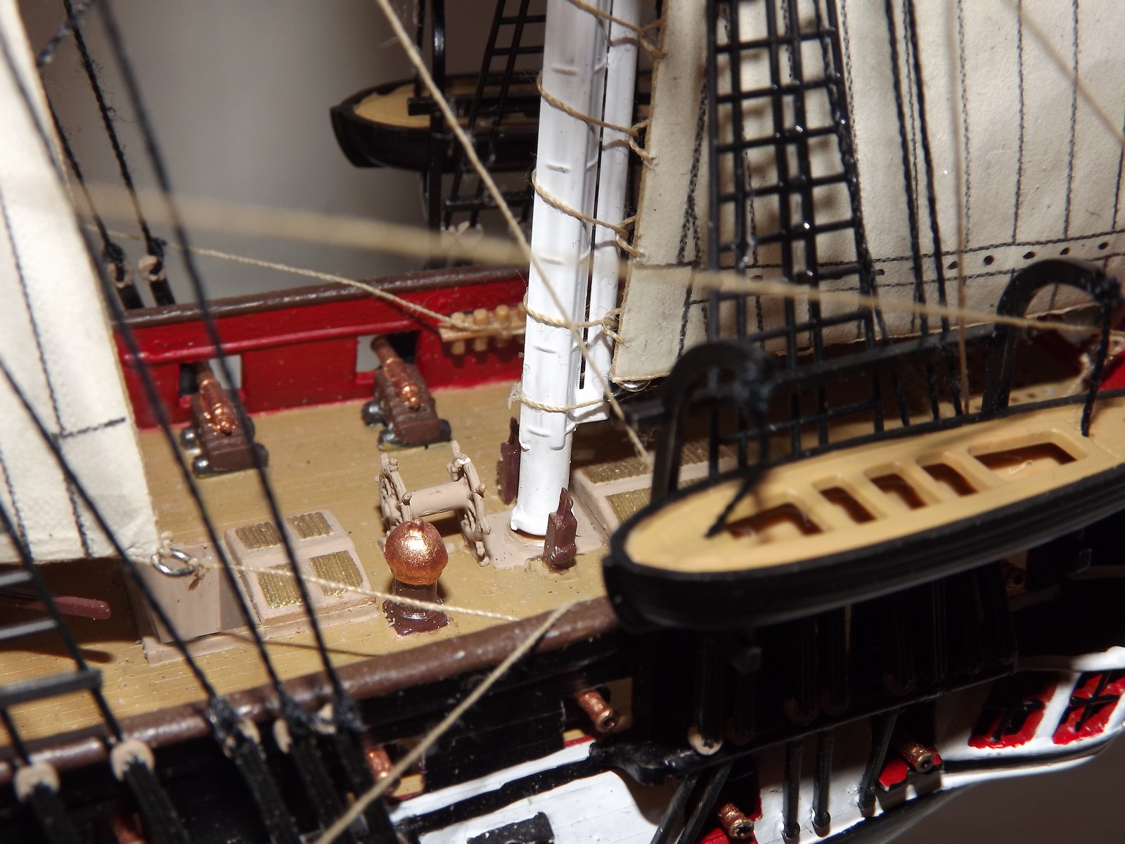 Насколько я понял, ванты так и остались пластмассовыми. Пушки, уж сильно начищенной медью отдают, можно было бы немного притонировать.