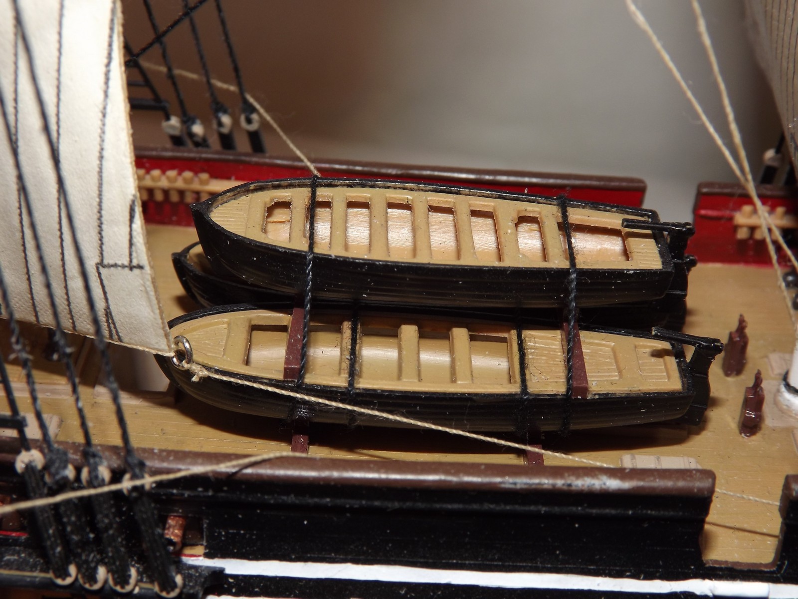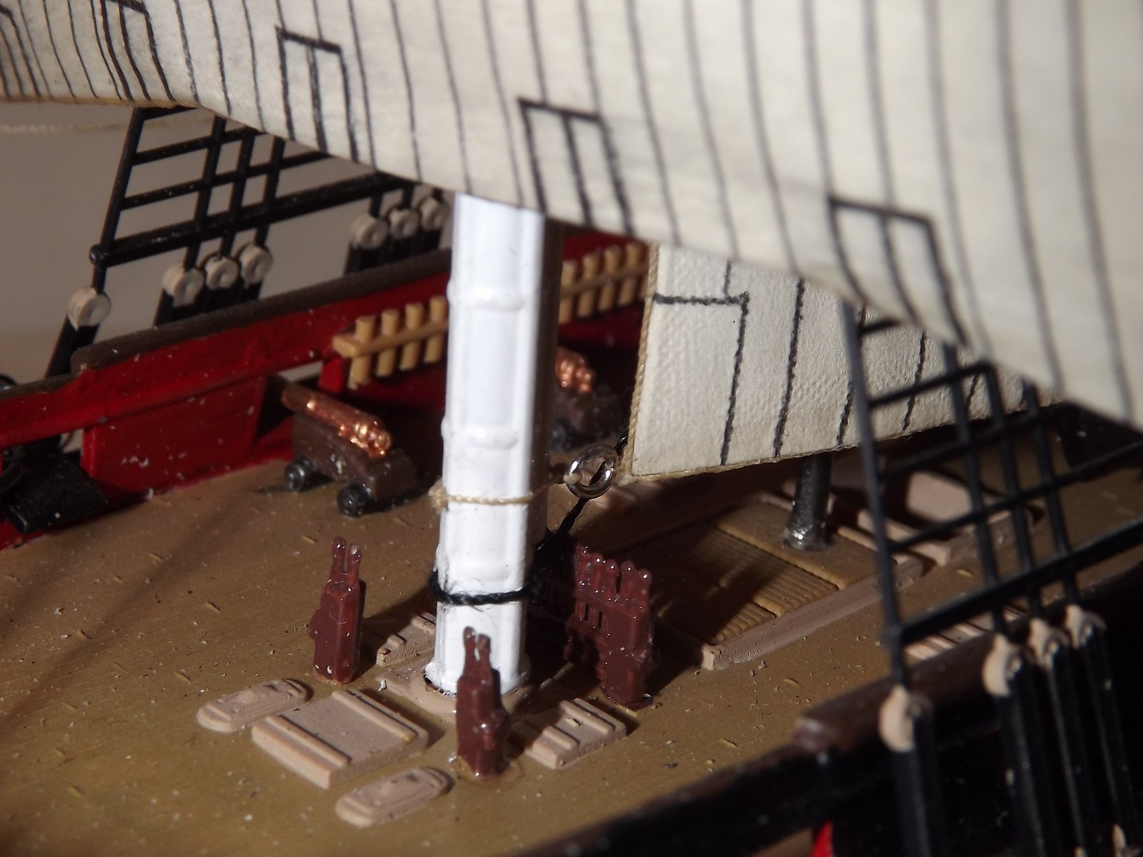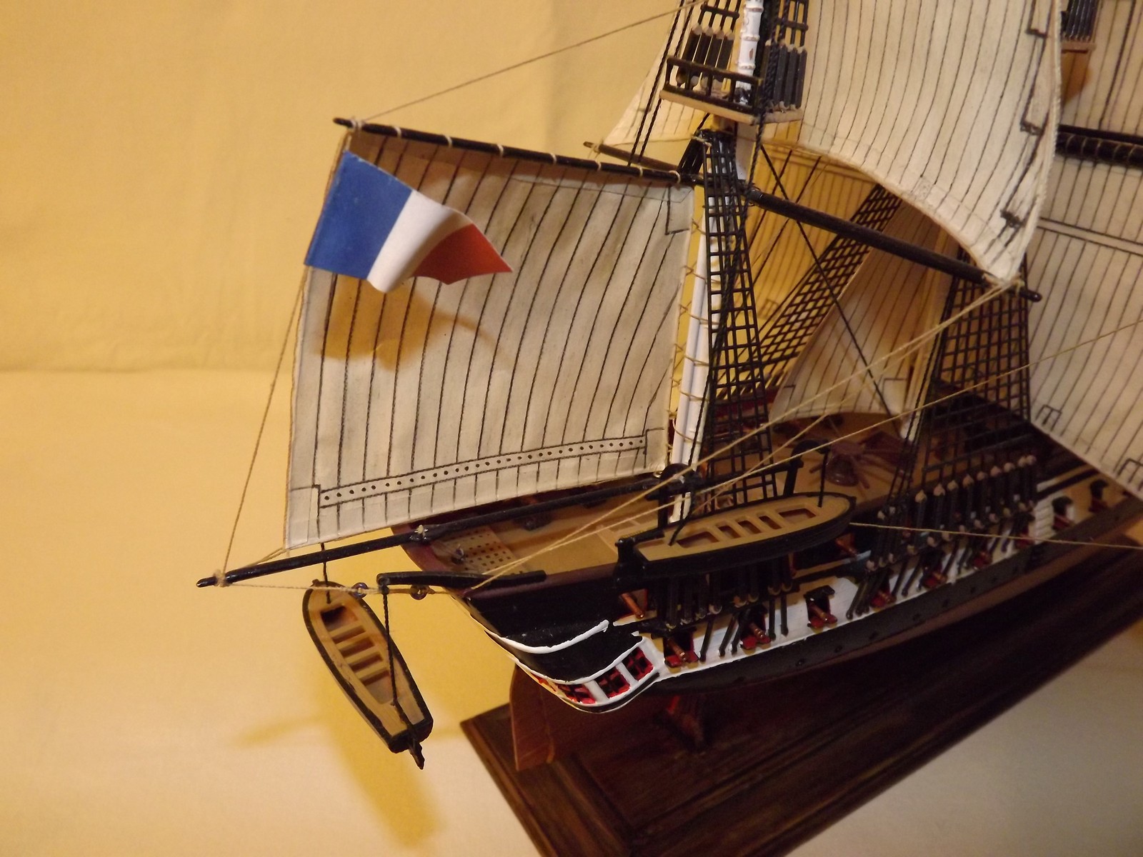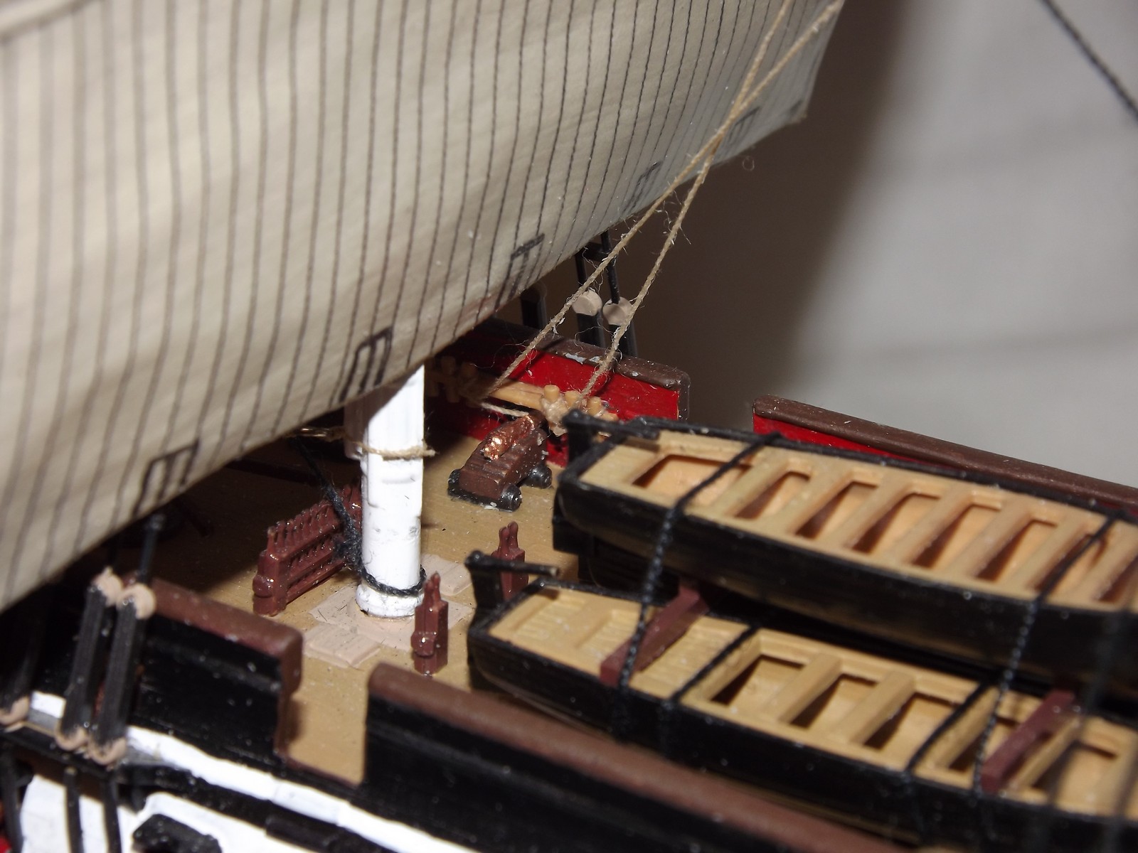 Паруса очень понравились, да и пушки по-моему в тему с общим видом покрашены и очень аккуратно, прекрасные и аккуратные шлюпки, флаг шикарный!