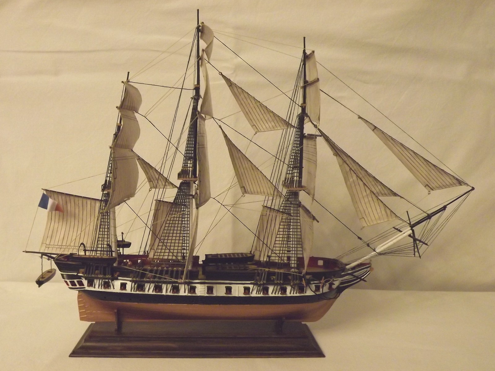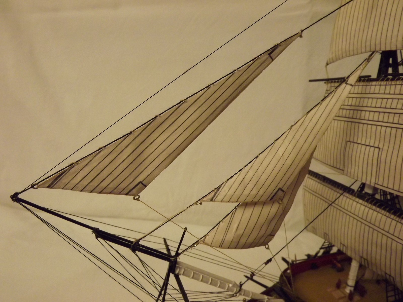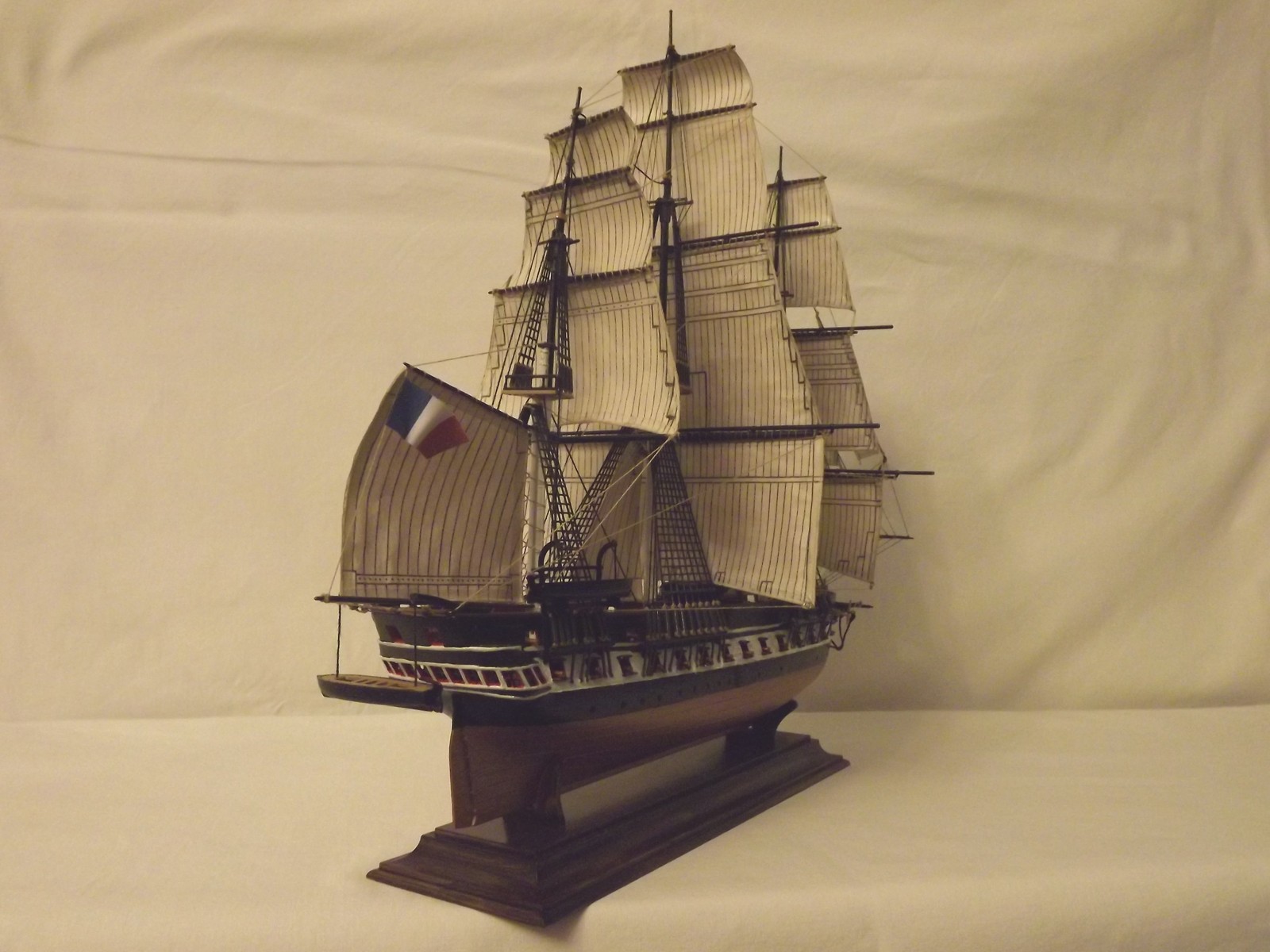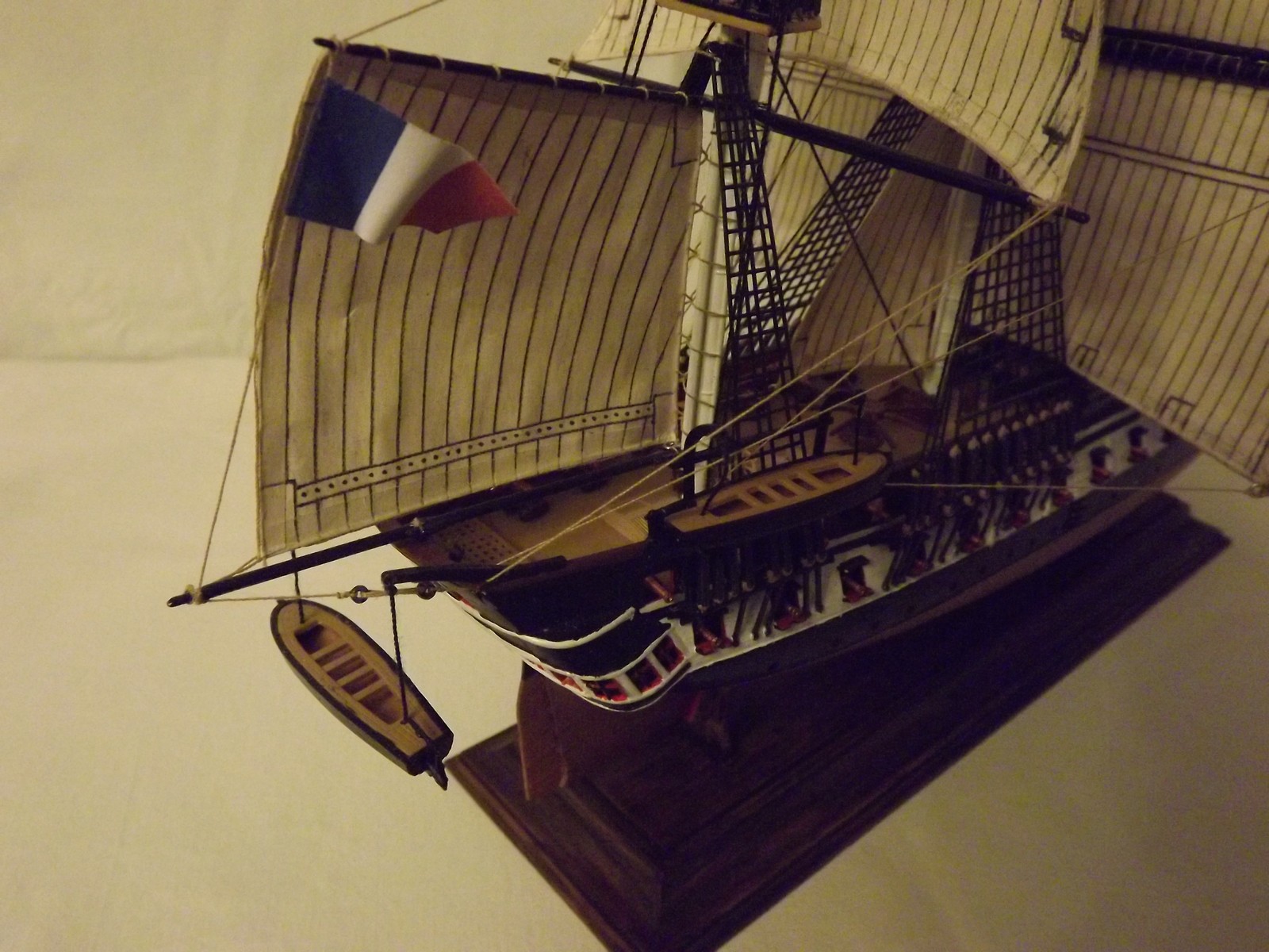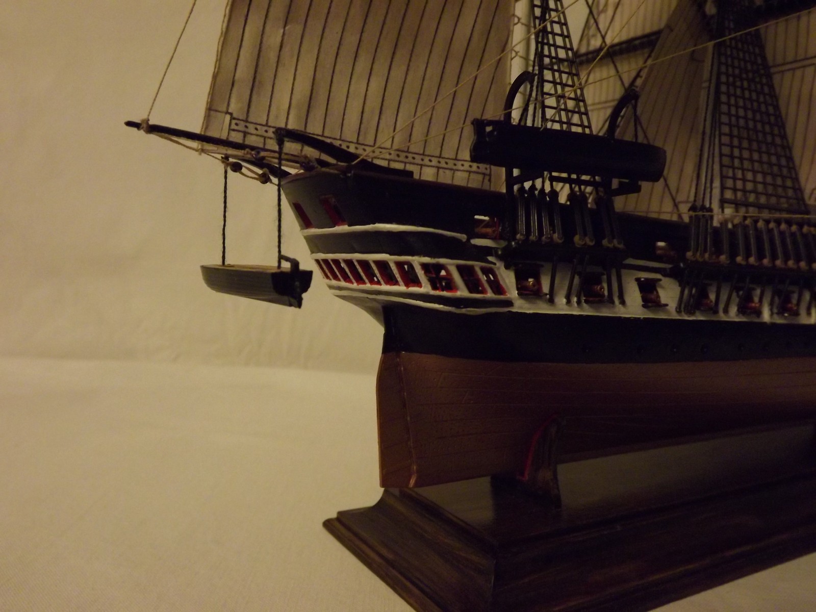 Паруса очень понравились, да и пушки по-моему в тему с общим видом покрашены и очень аккуратно, прекрасные и аккуратные шлюпки, флаг шикарный!