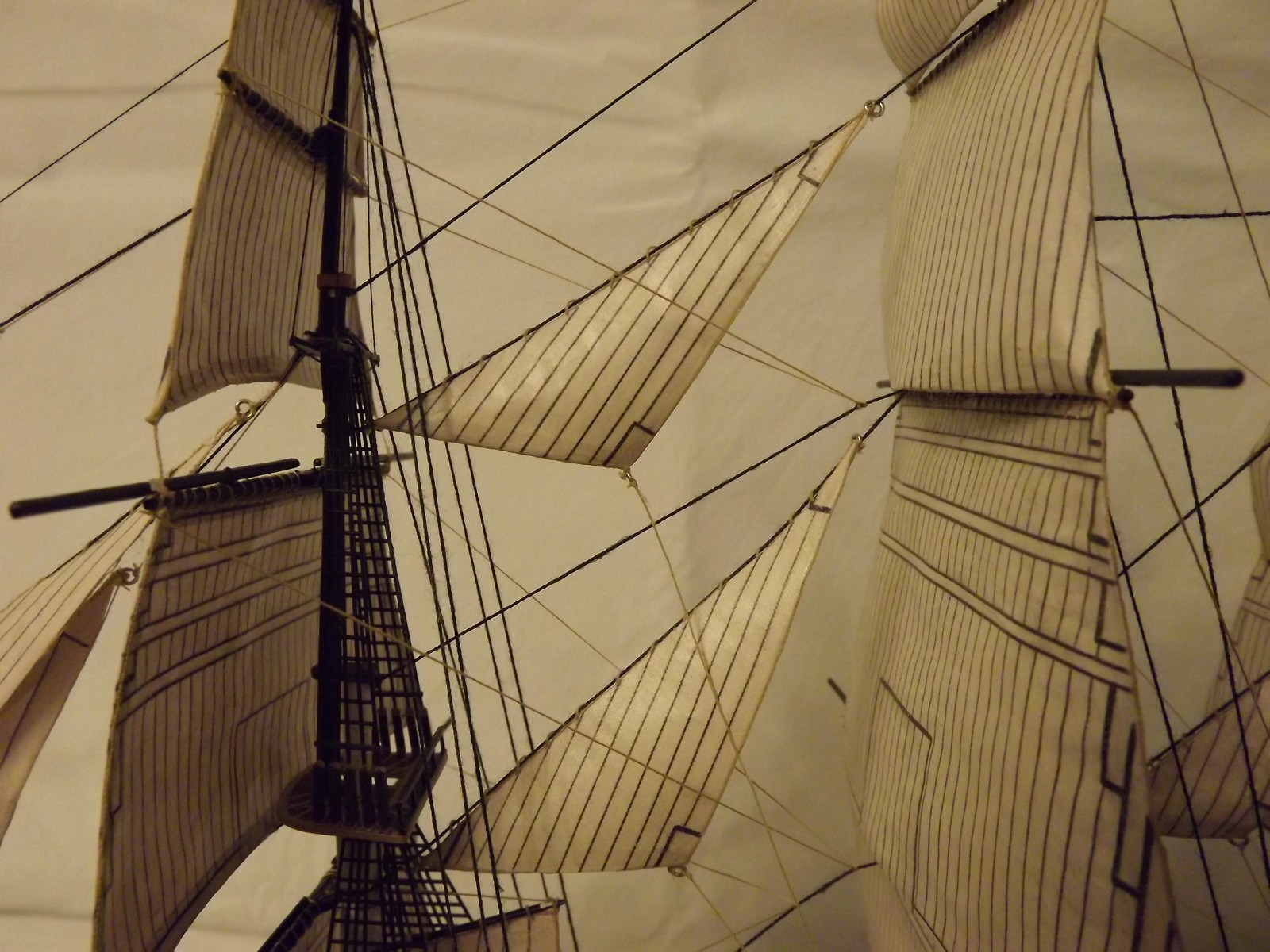 Дмитрий, спасибо за столь высокую оценку. Бизань действительно перетянута и лечится это заменой рангоута на дерево, но не по зубам мне это было. А на счёт такелажа - это же 200-й масштаб. Размер модели всего 30 см по корпусу и 43 см с бушпритом. Тяжеловато будет выглядеть полный такелаж.