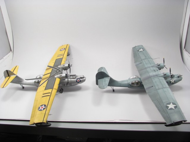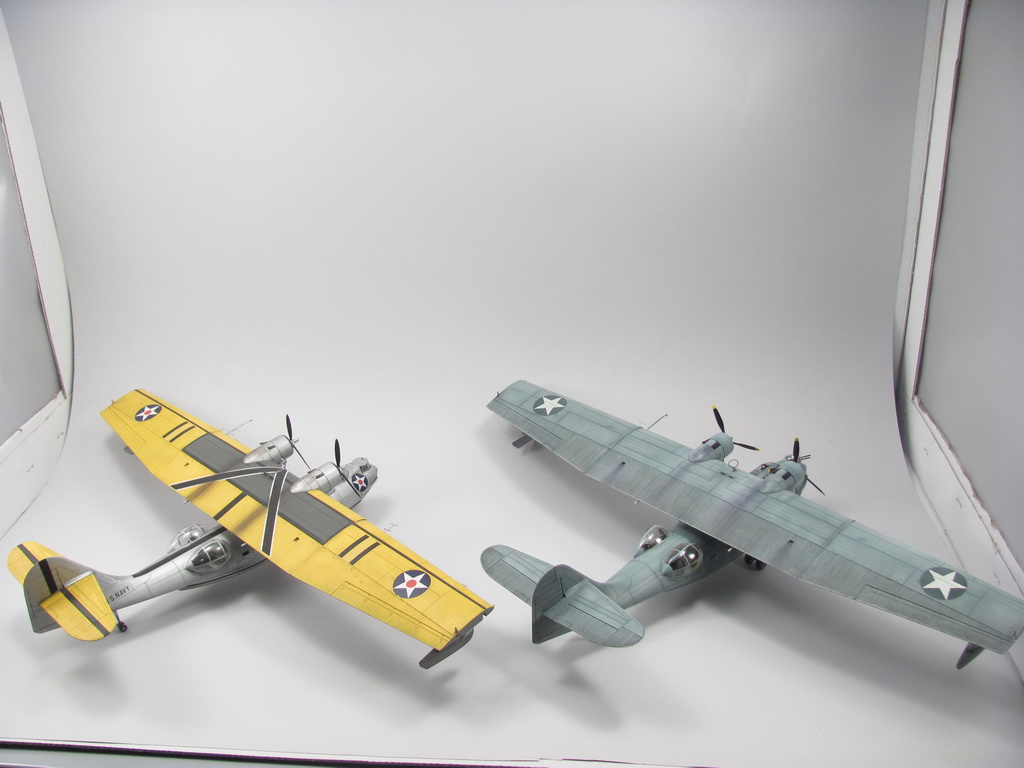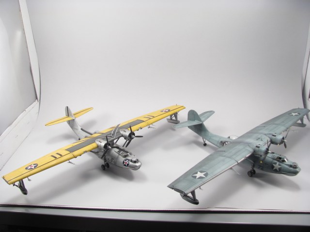 Не собирался выставлять Каталины, но были призивы колег, так что представляю вам пару PBY-5 Catalina собраны в разные периоды моей модельной жизни. Сами киты куплены одновременно, по ошибки. Хотел одна, пришли две :).