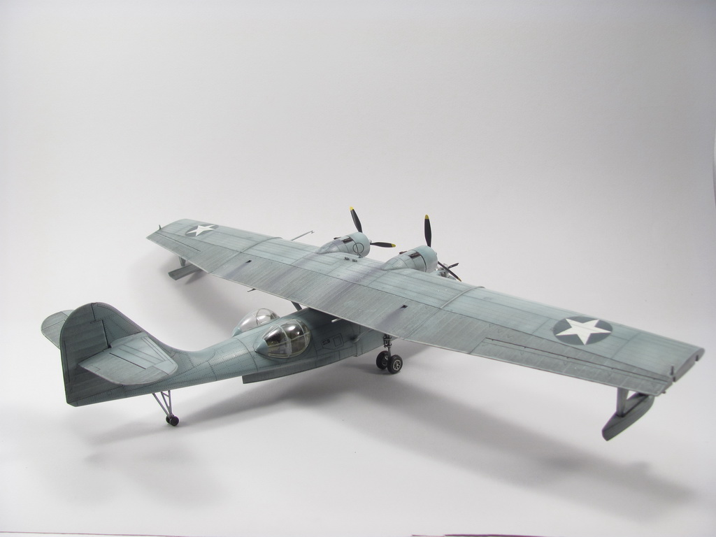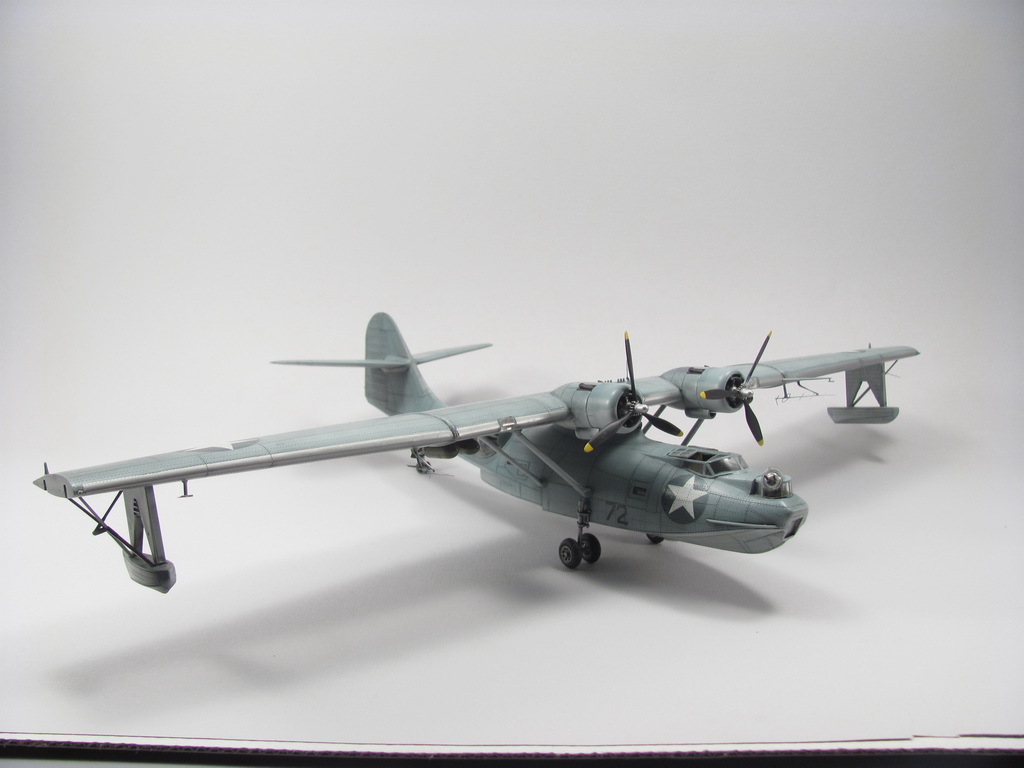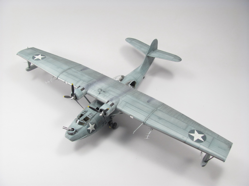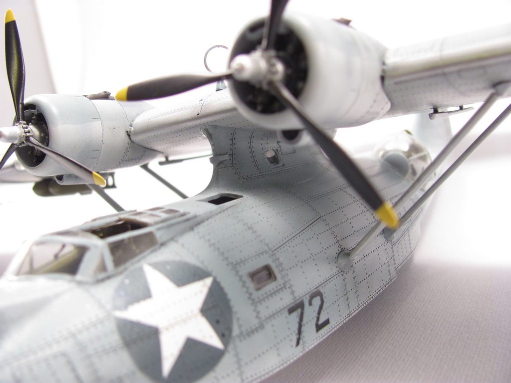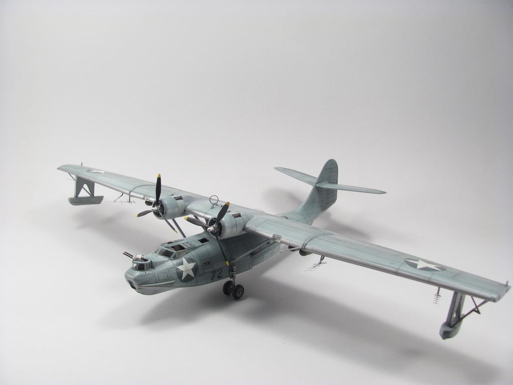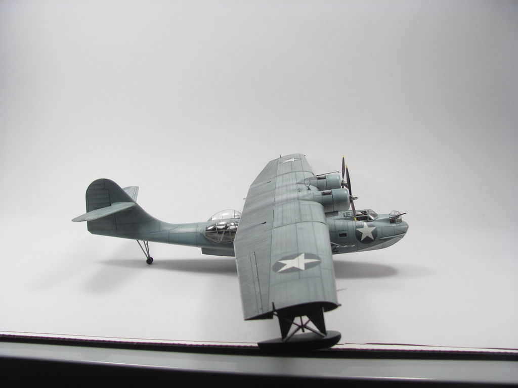 Голубая Каталина - работа годичной давностью. В ней применил травление от Едуарда и вкуумные фонари от Squadron, двигатели от QuickBoost. Идея была поставить в диораму с водой и обслуживающие техники, но на тот момент не охота было этим заниматся и пока лежит так в ожидании музы. Красил красками Mr. Color, смывки AK Interaktive, ОЗ - трафареты.