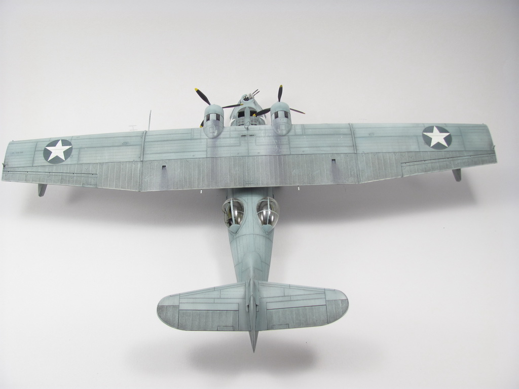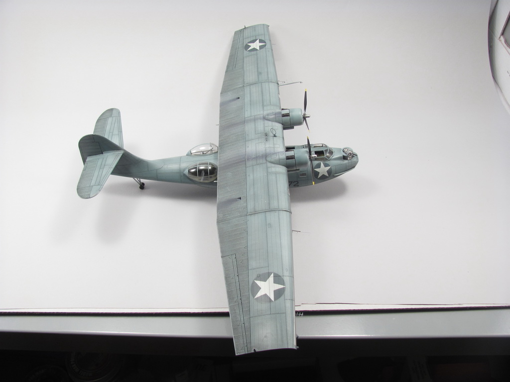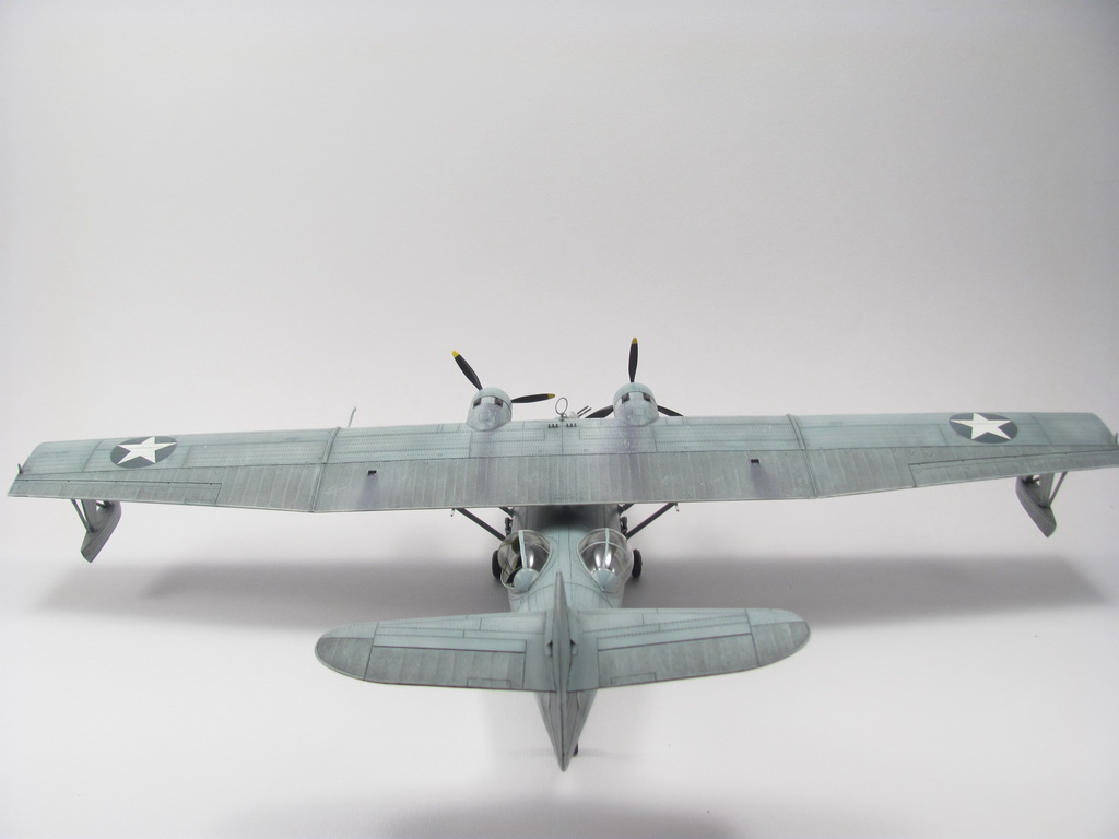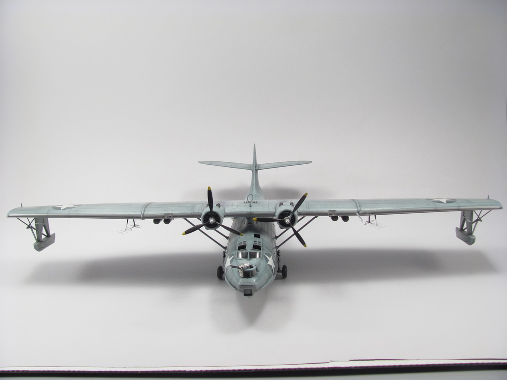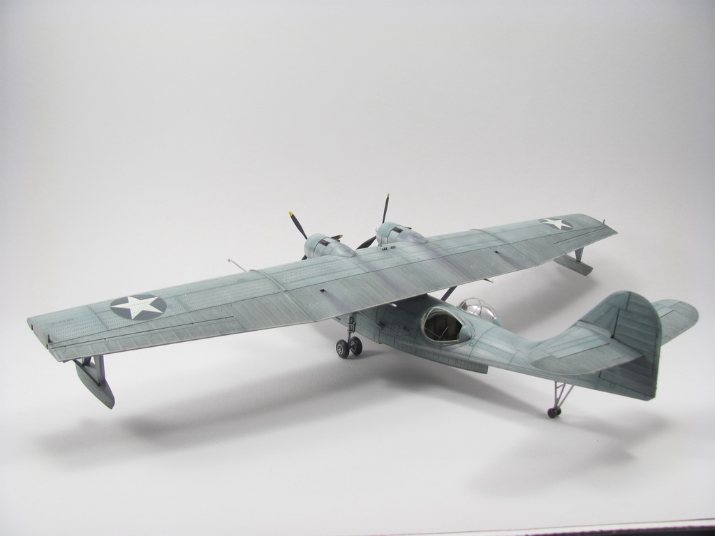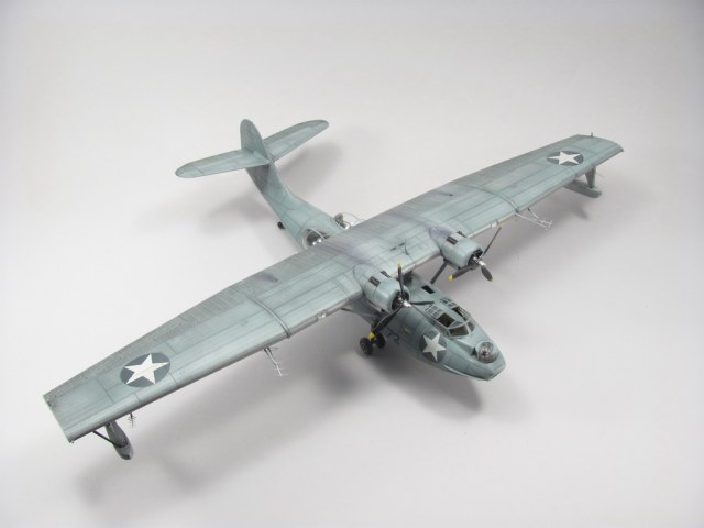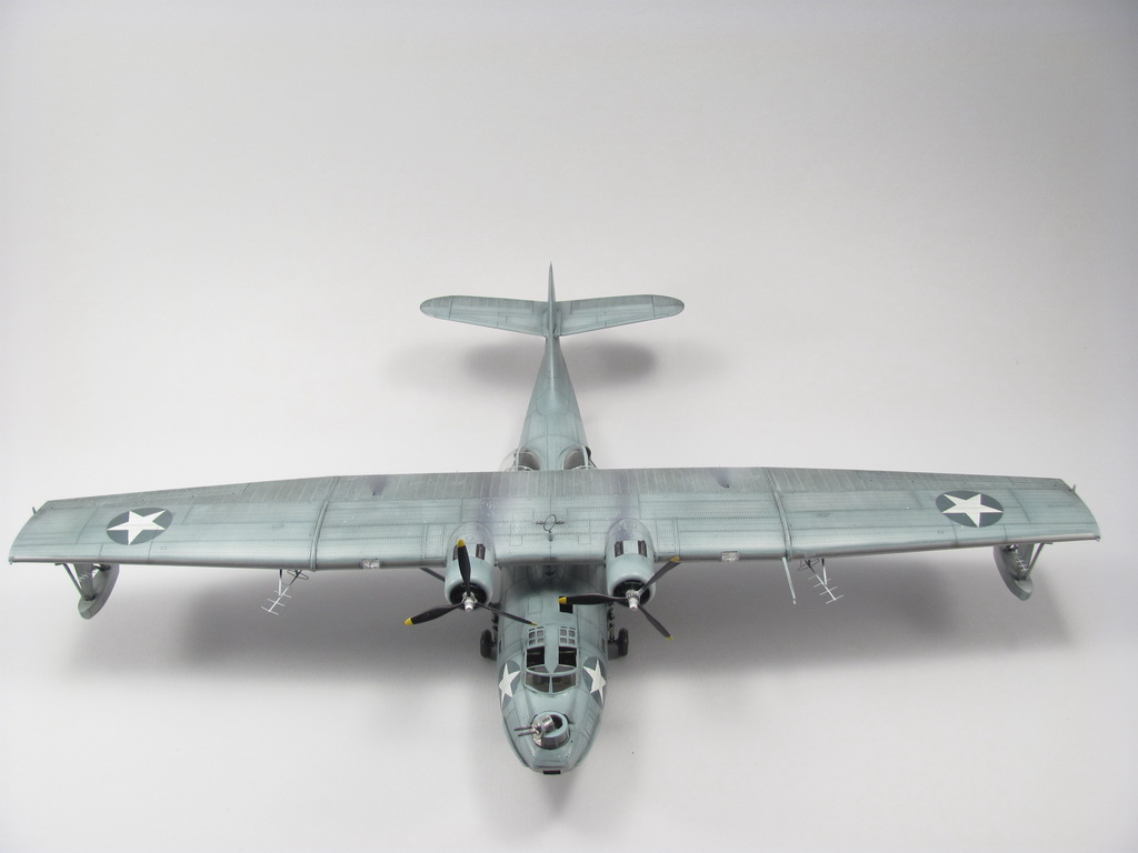 Голубая Каталина - работа годичной давностью. В ней применил травление от Едуарда и вкуумные фонари от Squadron, двигатели от QuickBoost. Идея была поставить в диораму с водой и обслуживающие техники, но на тот момент не охота было этим заниматся и пока лежит так в ожидании музы. Красил красками Mr. Color, смывки AK Interaktive, ОЗ - трафареты.