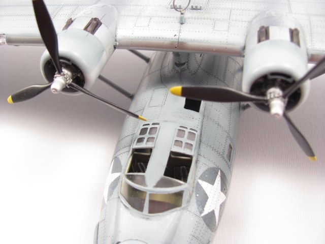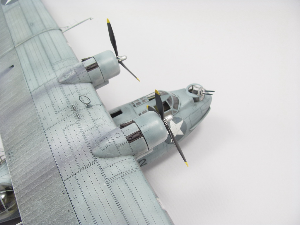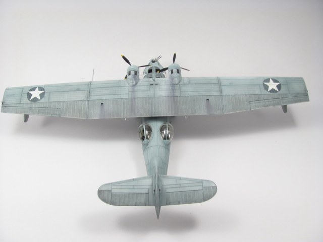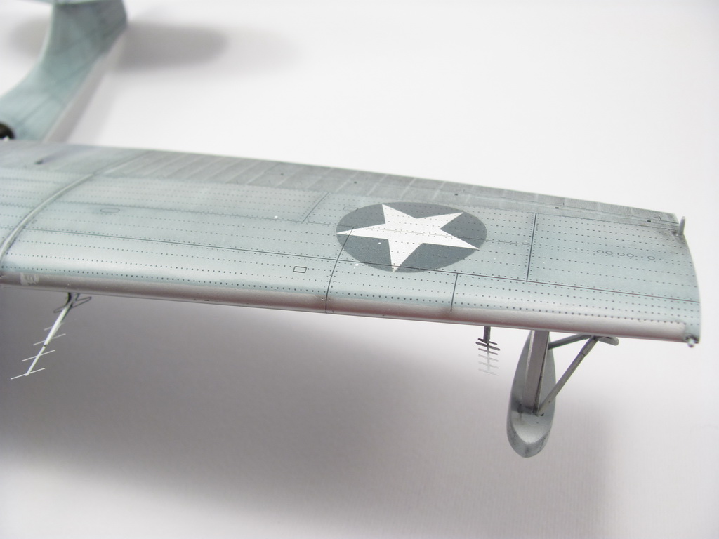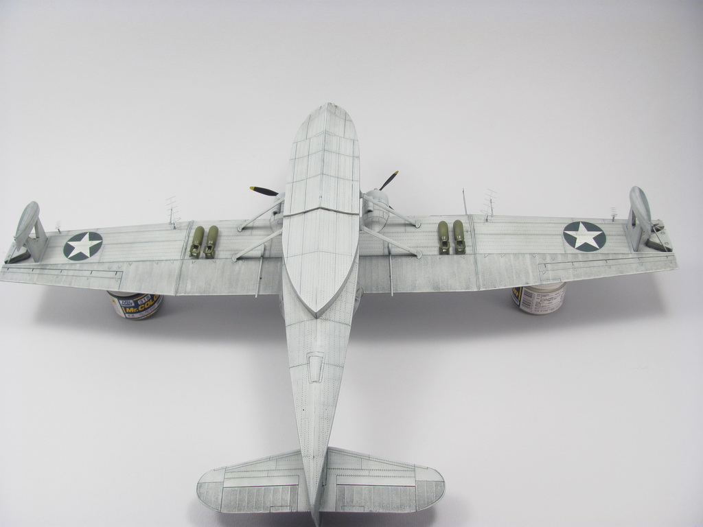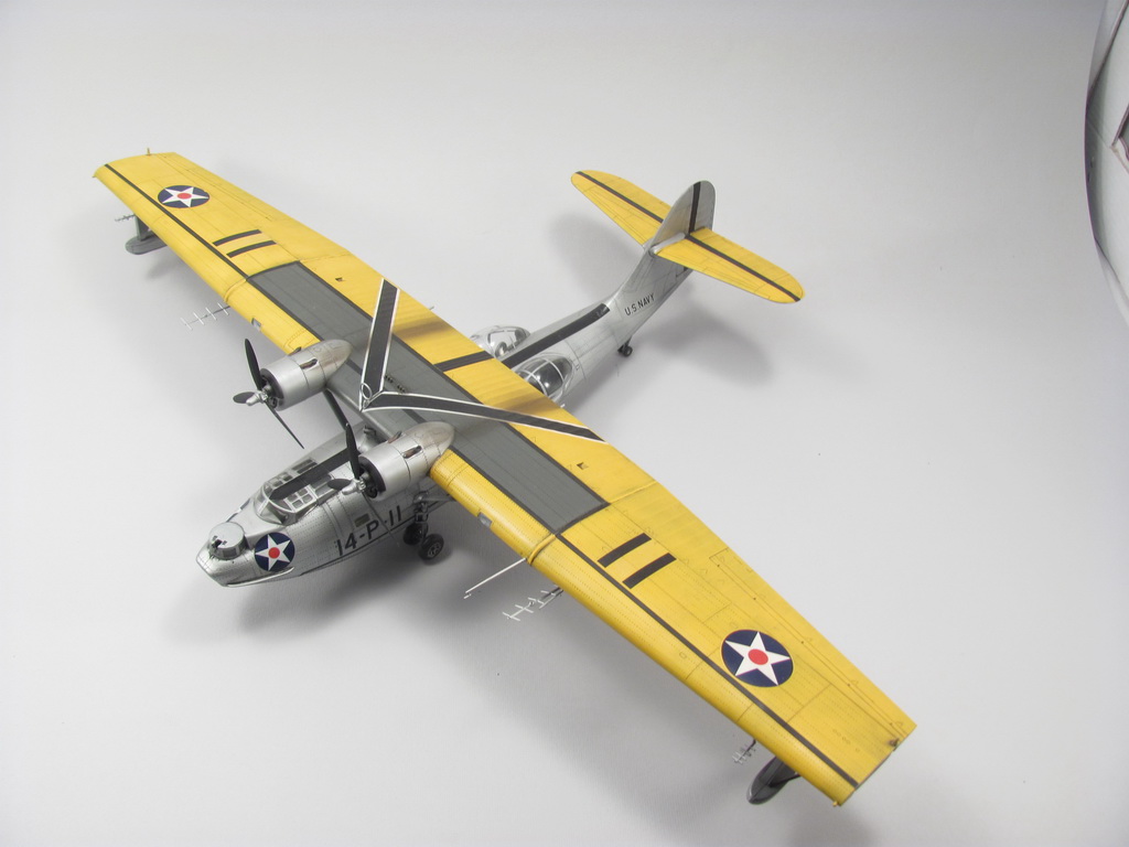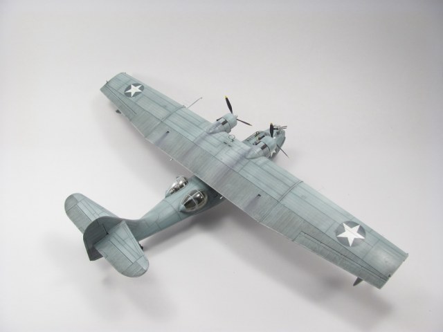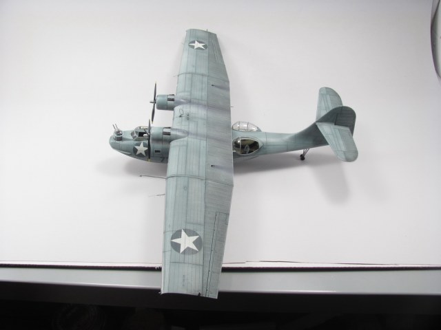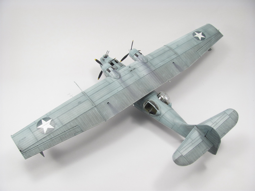 Голубая Каталина - работа годичной давностью. В ней применил травление от Едуарда и вкуумные фонари от Squadron, двигатели от QuickBoost. Идея была поставить в диораму с водой и обслуживающие техники, но на тот момент не охота было этим заниматся и пока лежит так в ожидании музы. Красил красками Mr. Color, смывки AK Interaktive, ОЗ - трафареты.