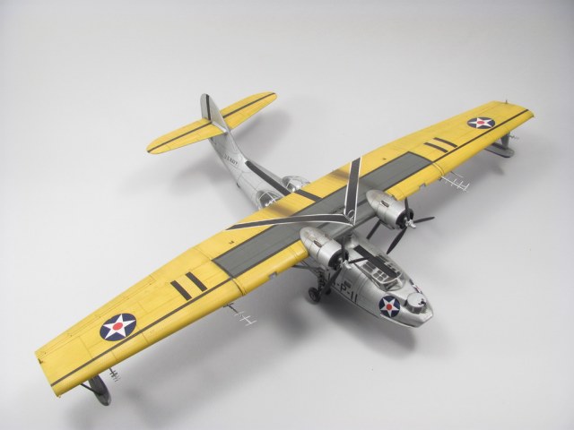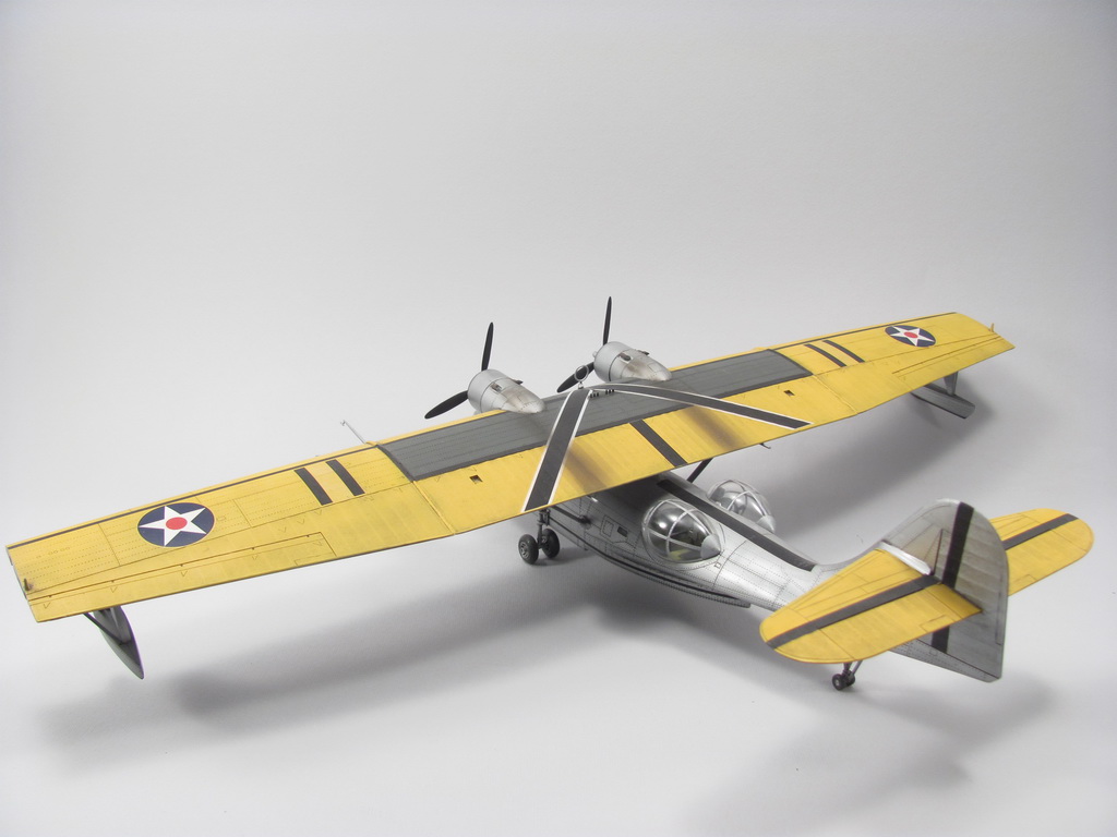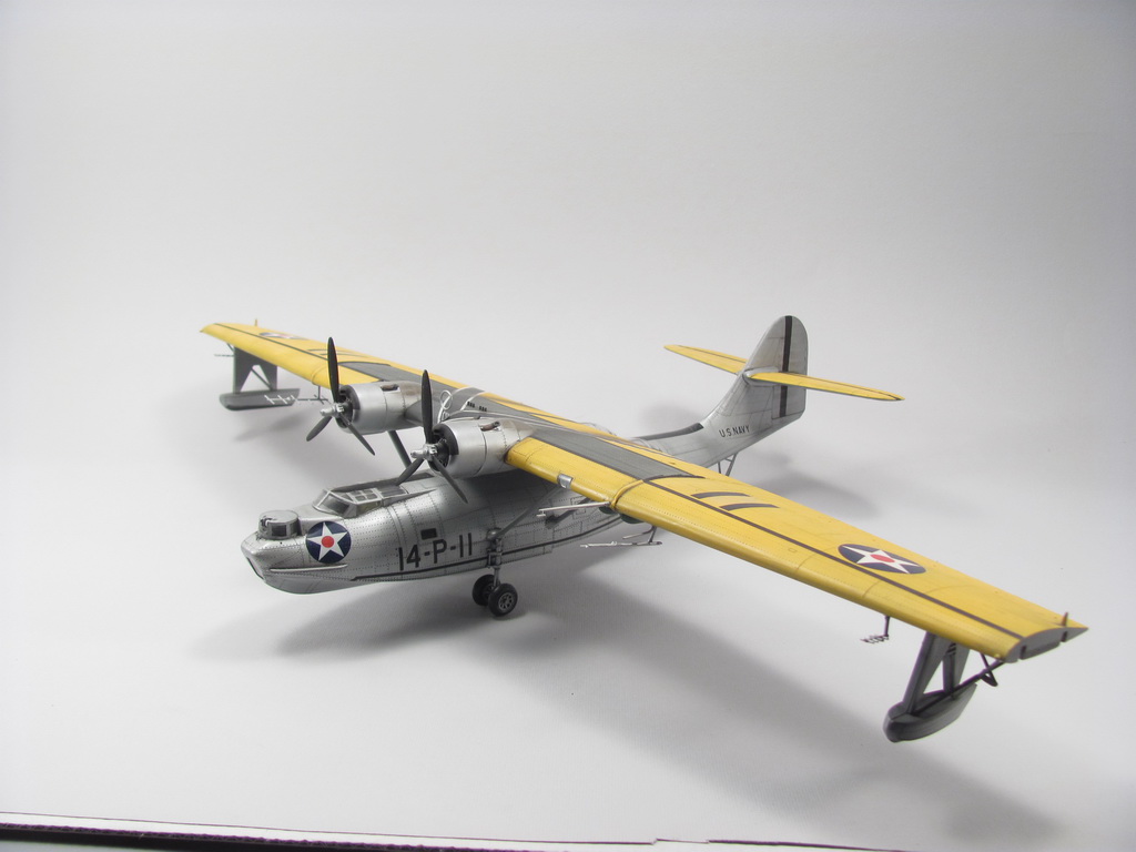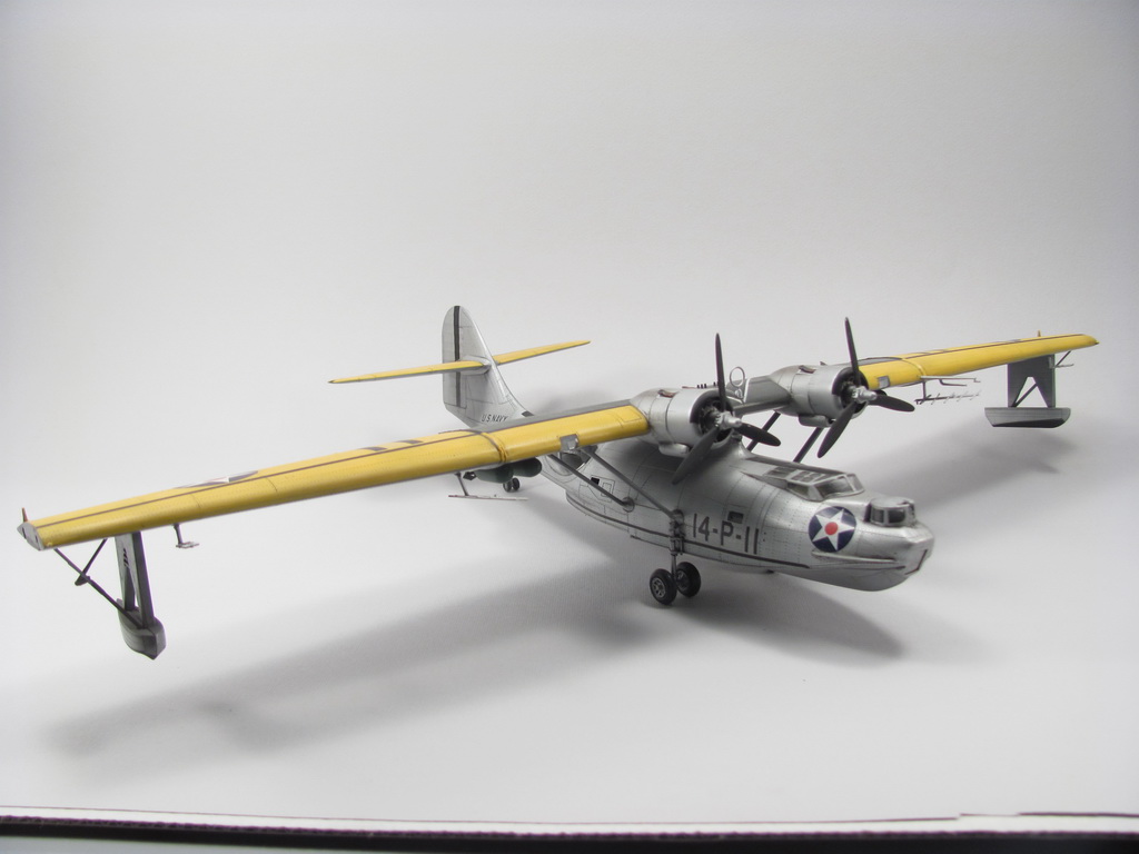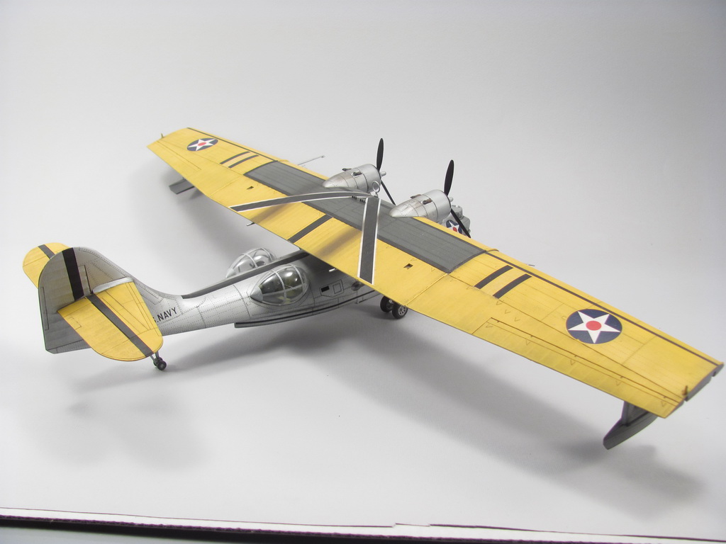 Желтокрилая Каталина - моя первая законченая модель после возвращения в моделизме после детских лет - 2010г. Собирал из коробки, красил красками Agama (серебро) и Revell - желый цвет. Декали - родные, старый Академ - толстые и ... не хочу вспоминать даже! Выхлоп - как вспомню сейчас даже весело становится - по дурности в бутылочки акрильного глянцевого лака Агама поставил стальной шарик что бы полегче мешалась краска. Ну и за две недели лак стал ржавого цвета. Отличная штука для выхлопных следов :). Смивка - акварель.