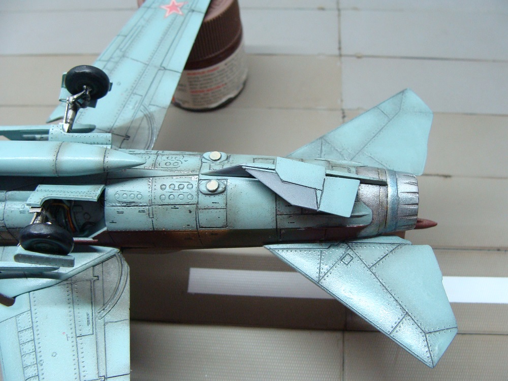 Очень понравилось сопло. По поводу пуза- на тех реальных самолётах что удалось застать- брюхо однотонное, в один цвет. Но вот швы на той части что приводили другого цвета- очень задымленные, и очень много потёков гидрача...там какраз системы все идут и дренажка..