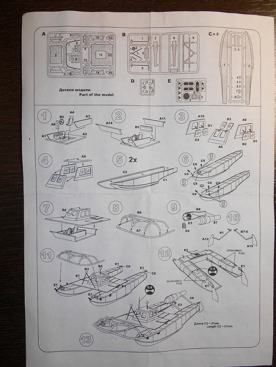 Этот же катер есть и в 35-ом масштабе, разница только в отзеркаленом заглавном рисунке, а коробочка тех же размеров.