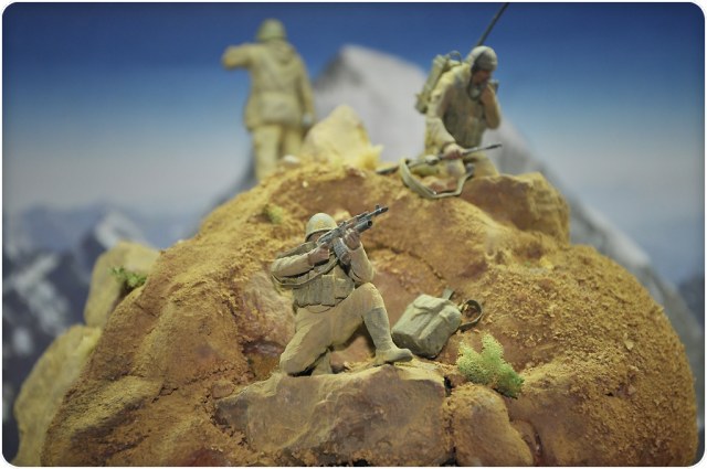 Первый опыт диорамо-построения, набор от "Звезды" неплохой такой, по оружью вообще круче мастербокса/дрэгона/миниарта. Единстенно нагибалово с отливкой вышло, на коропке штамп 2013 и видны на мастер моделях швы на одежде, на отливке 2010 и швы как корова языком слизала((....Зато со стыковчными швами намучалсооооо%) вроде все убрал зачистил - красишь и оба-на вылазят из ниоткуда.