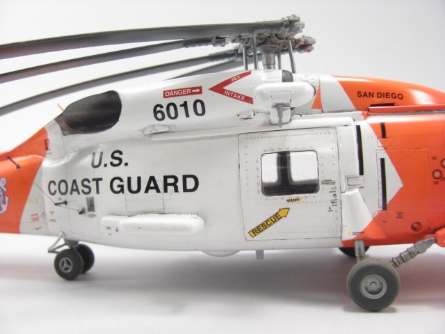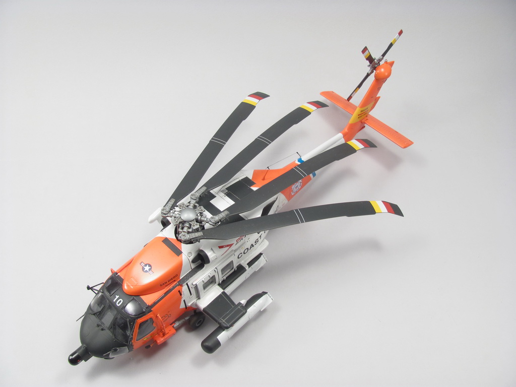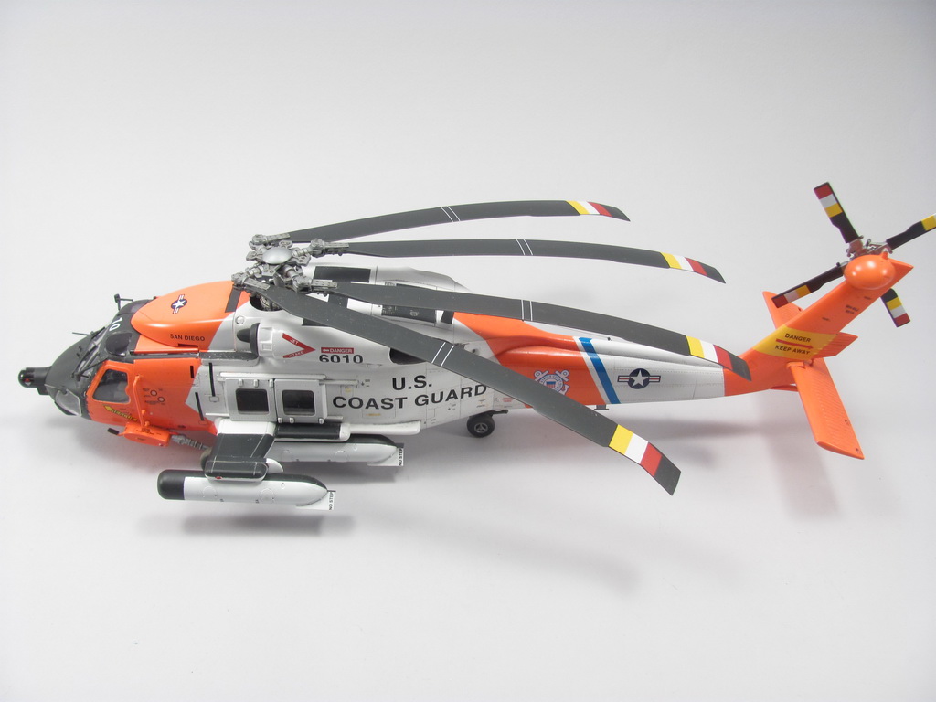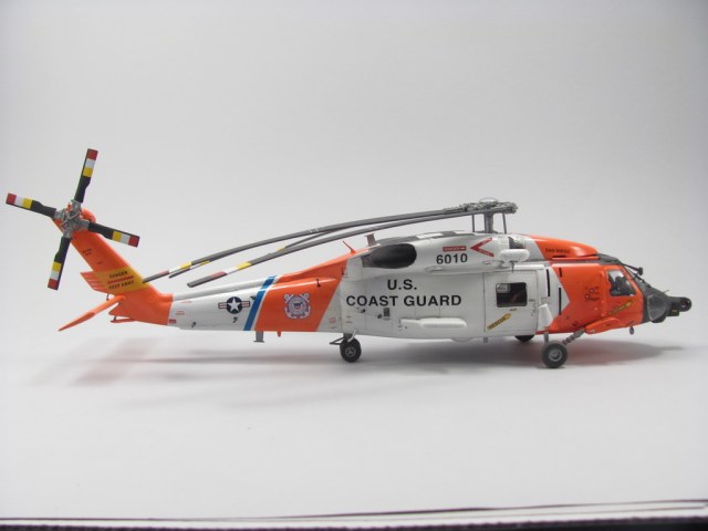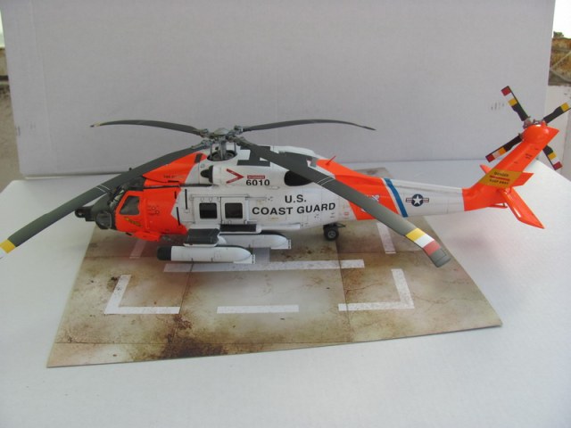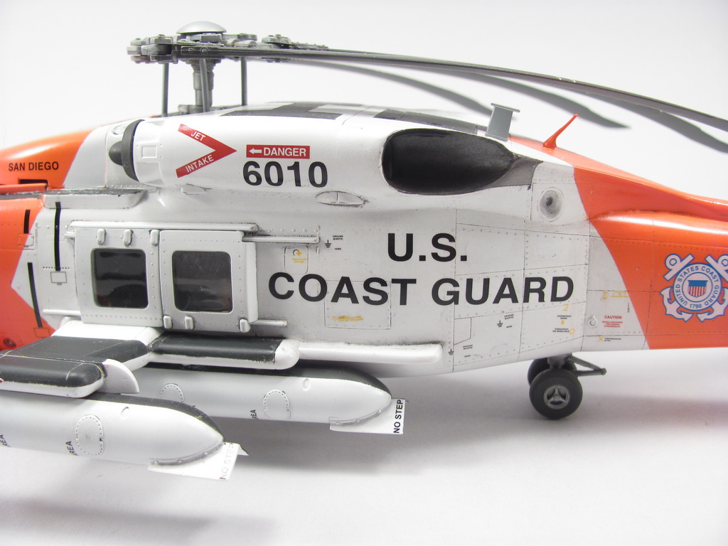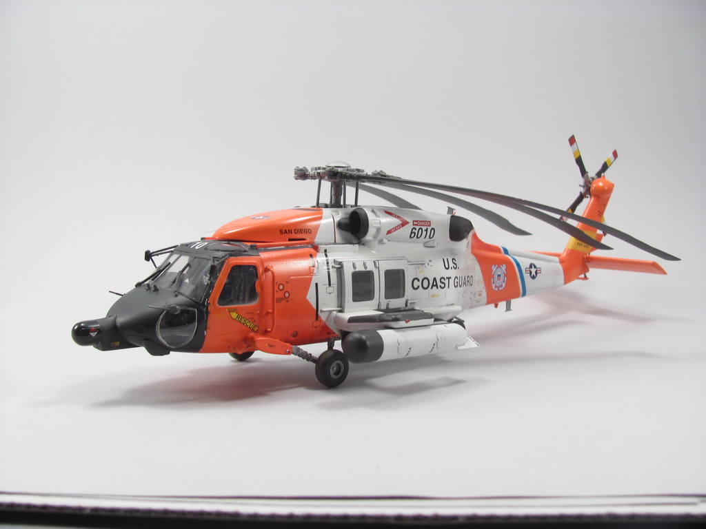 Представляю модель вертолета HH-60J US Coast Guard в маштабе 1/48. Производиетль - дочерная фирма Кинетика. За основу китайцы взяли пластик Italery, а отличия от серийного Seahawka - дополнительные детали китайского производства, декали от Картографа, в коробку поставили травления для интериора и спасательной корзины. Приятно - добавили цветную картонную подставку в виде вертолетной палубе :).