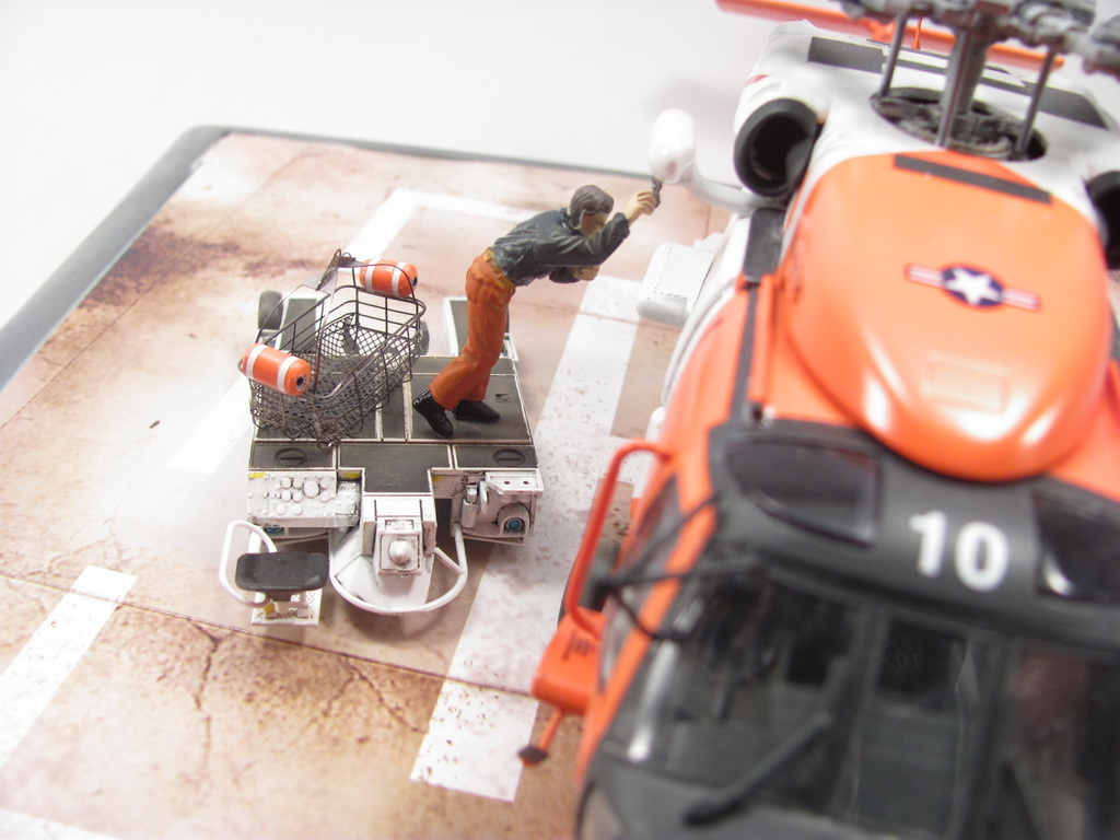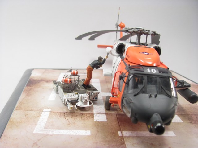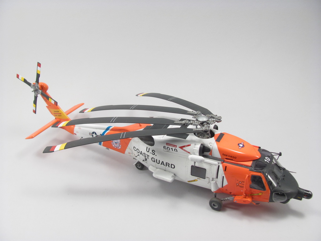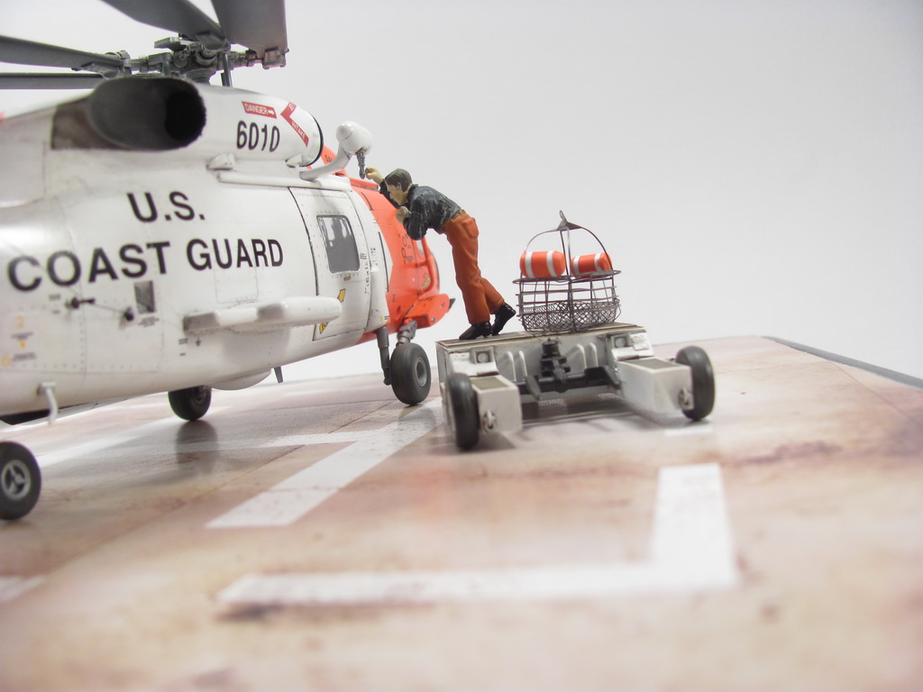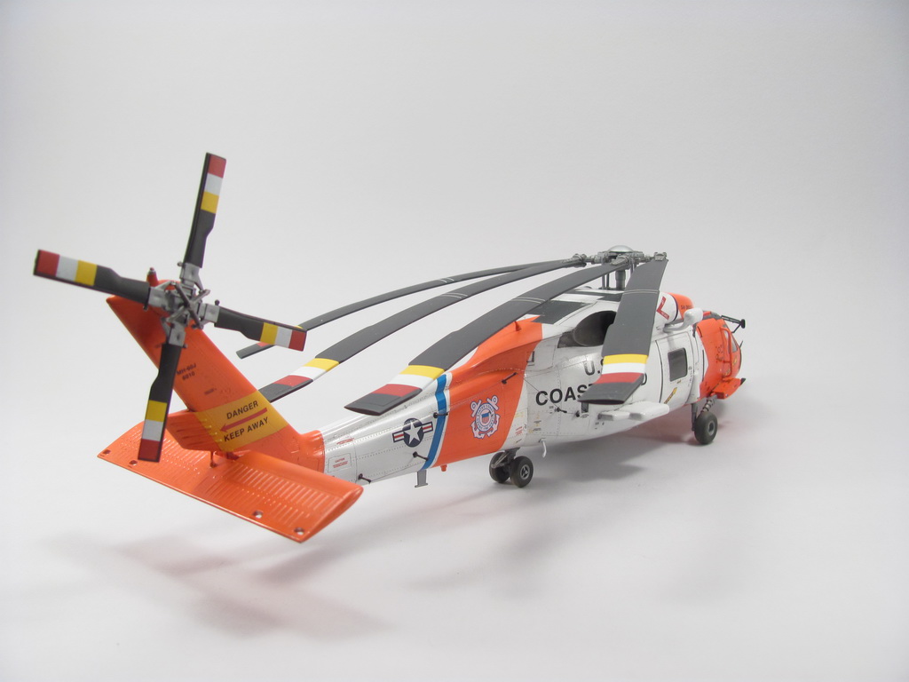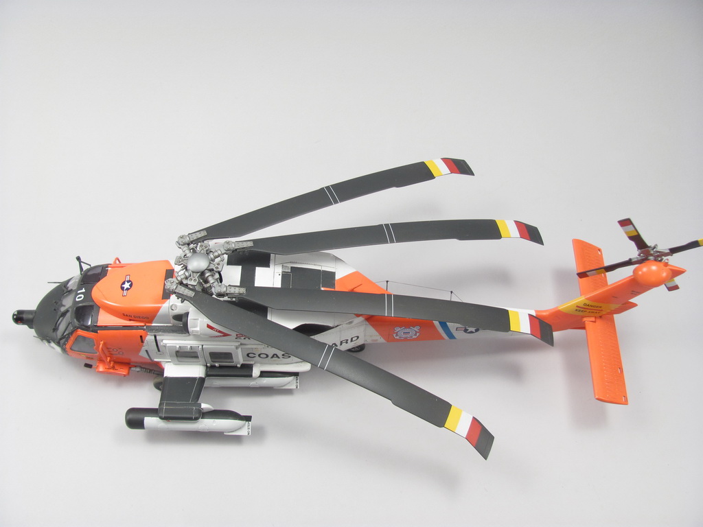 Представляю модель вертолета HH-60J US Coast Guard в маштабе 1/48. Производиетль - дочерная фирма Кинетика. За основу китайцы взяли пластик Italery, а отличия от серийного Seahawka - дополнительные детали китайского производства, декали от Картографа, в коробку поставили травления для интериора и спасательной корзины. Приятно - добавили цветную картонную подставку в виде вертолетной палубе :).