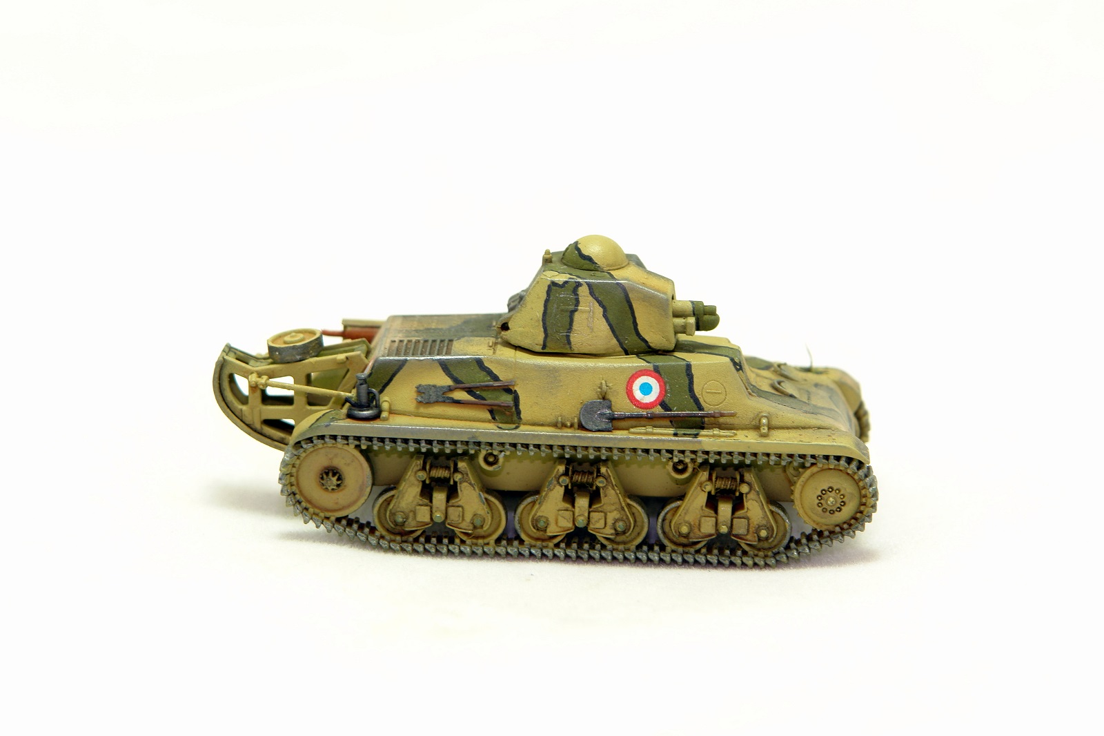Представляю модель легкого танка Н-38 фирмы Гочкис. Это собственно модификация Н-35 с другим двигателем и усиленным бронированием. Было сделано порядка 1200 штук всех модификаций. Часть танков сгорела в боях за Францию, но 600 штук досталось фашистам и они их интенсивно использовали. Сам танк довольно маленький. Примерно как Рено ФТ. Видно на фото с немцем. По модели - очень понравилась сборка. Шпатлевки мало-мало:) Надеюсь вам понравится.