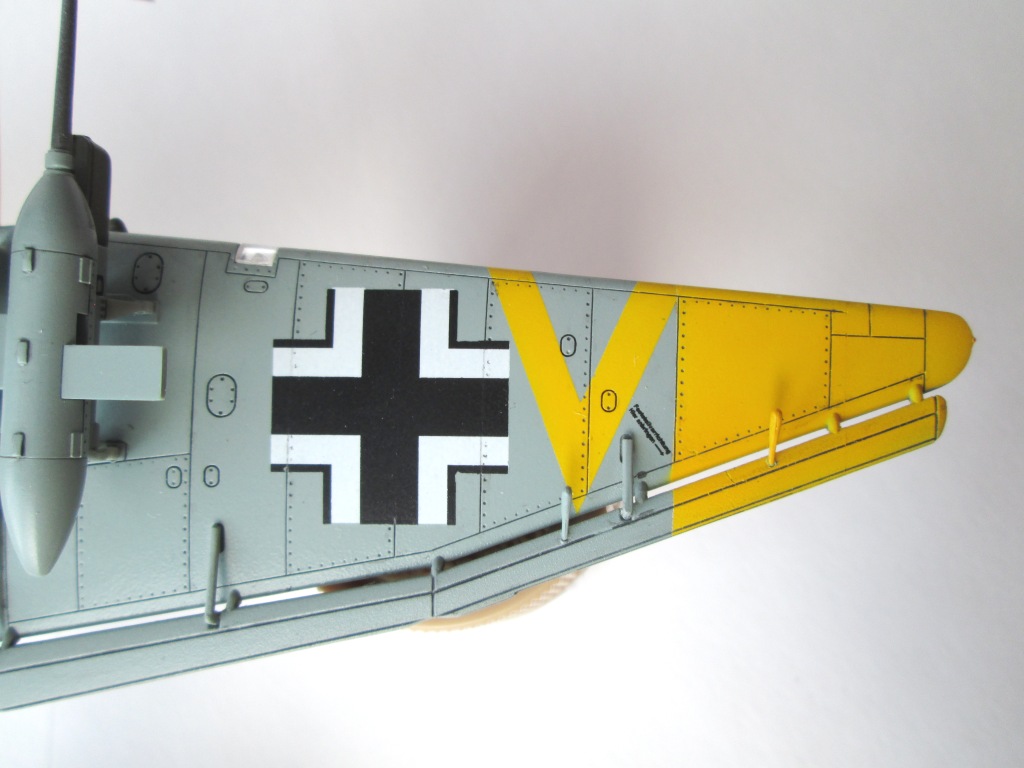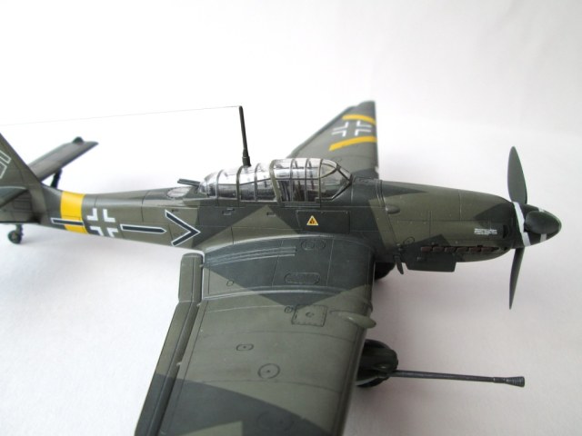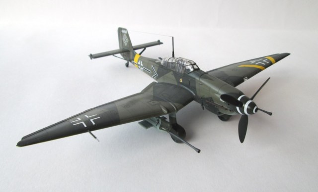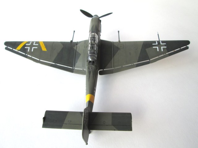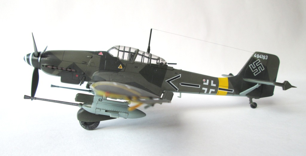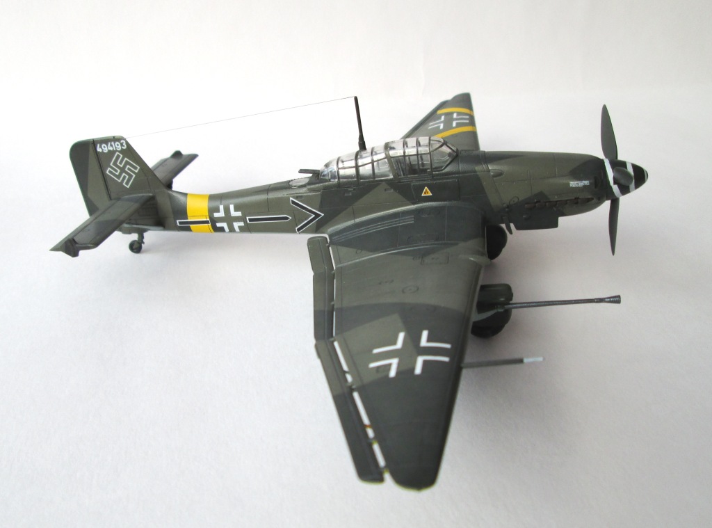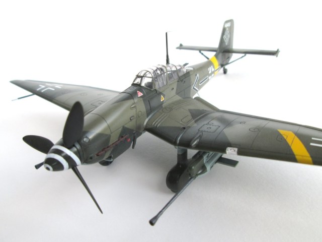 Свастика должна быть стандартная, черно-белая, а не в виде белой окантовки,я сам такую ошибку сделал на своем Юнкерсе.А желтые полосы в виде шеврона на крыле наносились на самолеты, воевавшие 44-45г. в Венгрии.