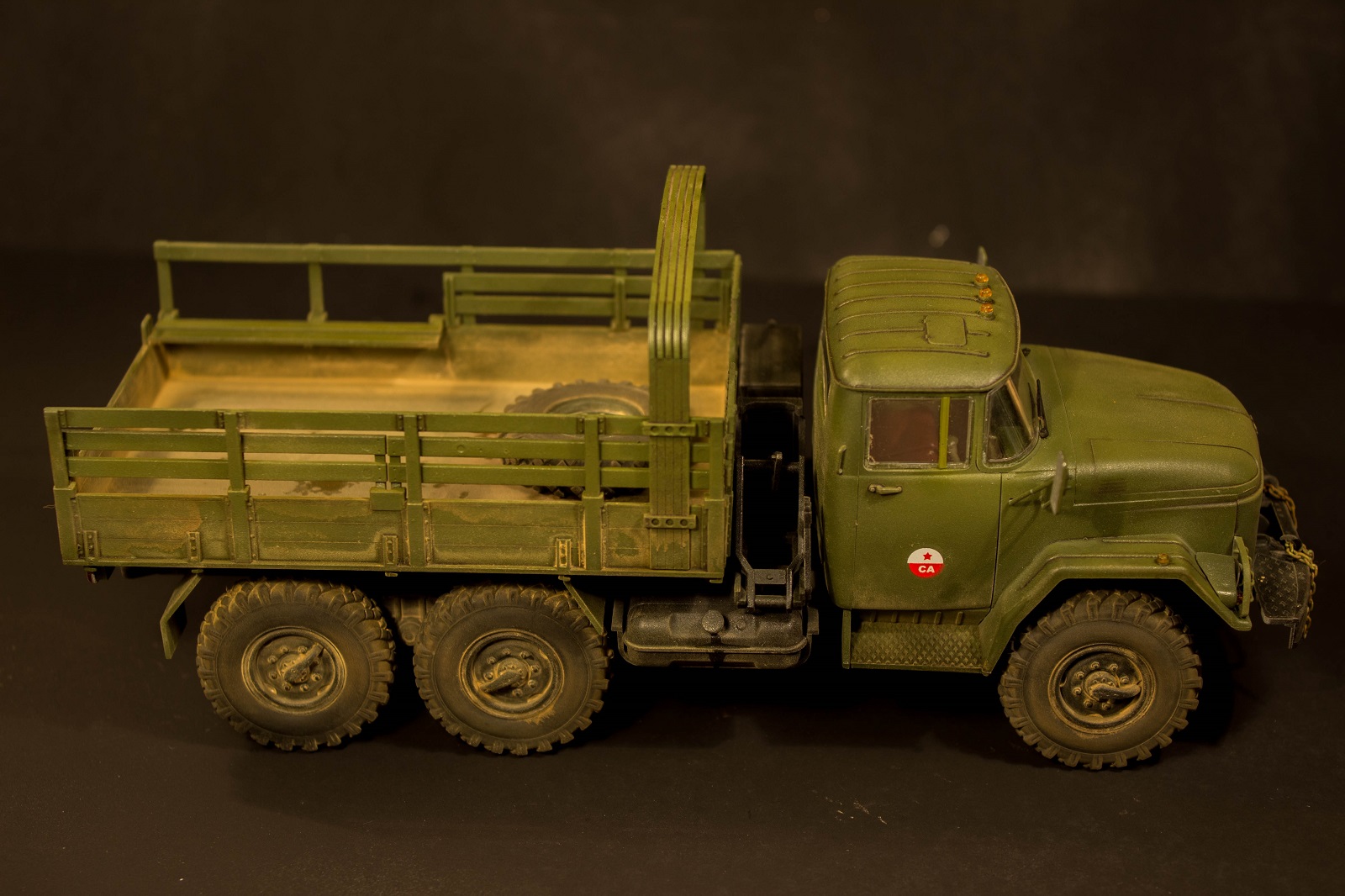 Купил модель практически сразу после ее выхода на рынок. Очень понравилась в сборке нареканий нет все стыкуется на раз два(напильник с зубилом остались без дела). Модель собиралась полностью из короб без каких либо доработок. только цепь от АК. Красил красками Tamiya замешанной под 4БО, пигменты и смывка от MIG, эффект топлива от AK. Осбо сильно грязными кистями и тапками не закидывайте первый раз имею дело с автомобилям.