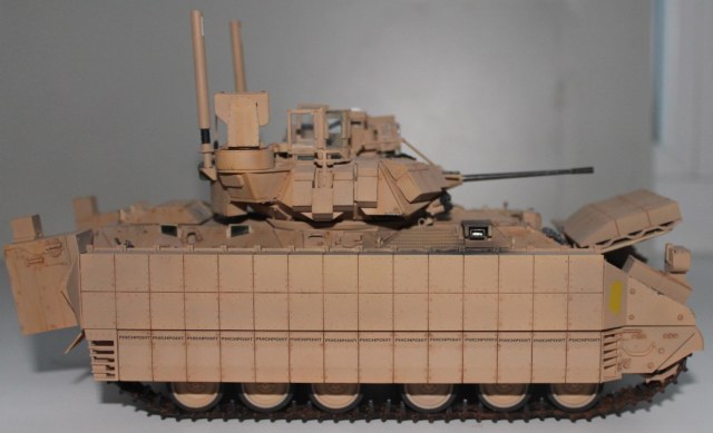 Здравствуйте, уважаемые коллеги. Представляю на ваш суд модель американского БМП М2А3 с комплектом дополнительной защиты для боев в городских условиях.