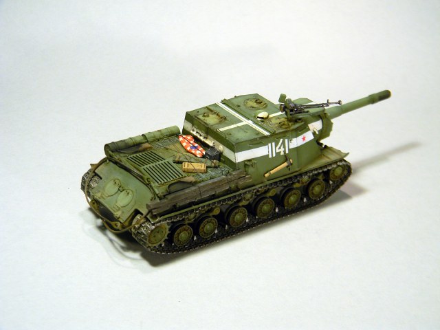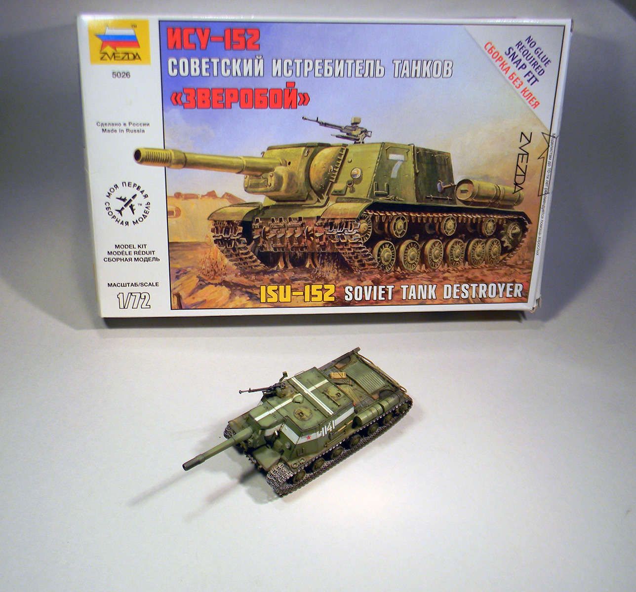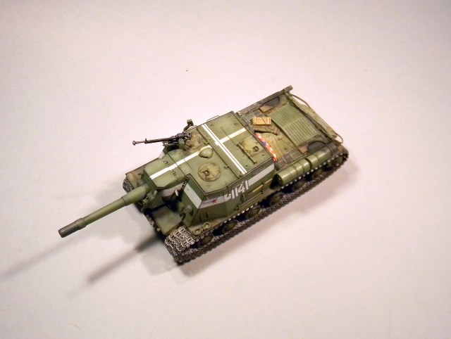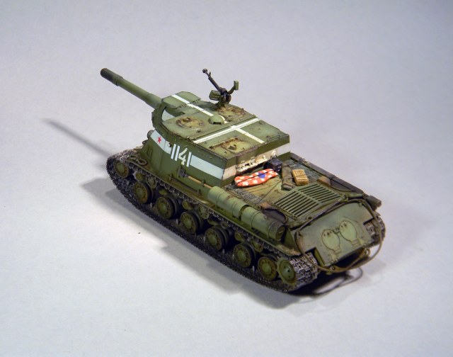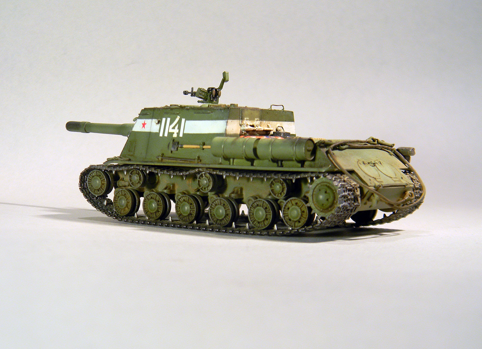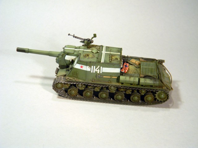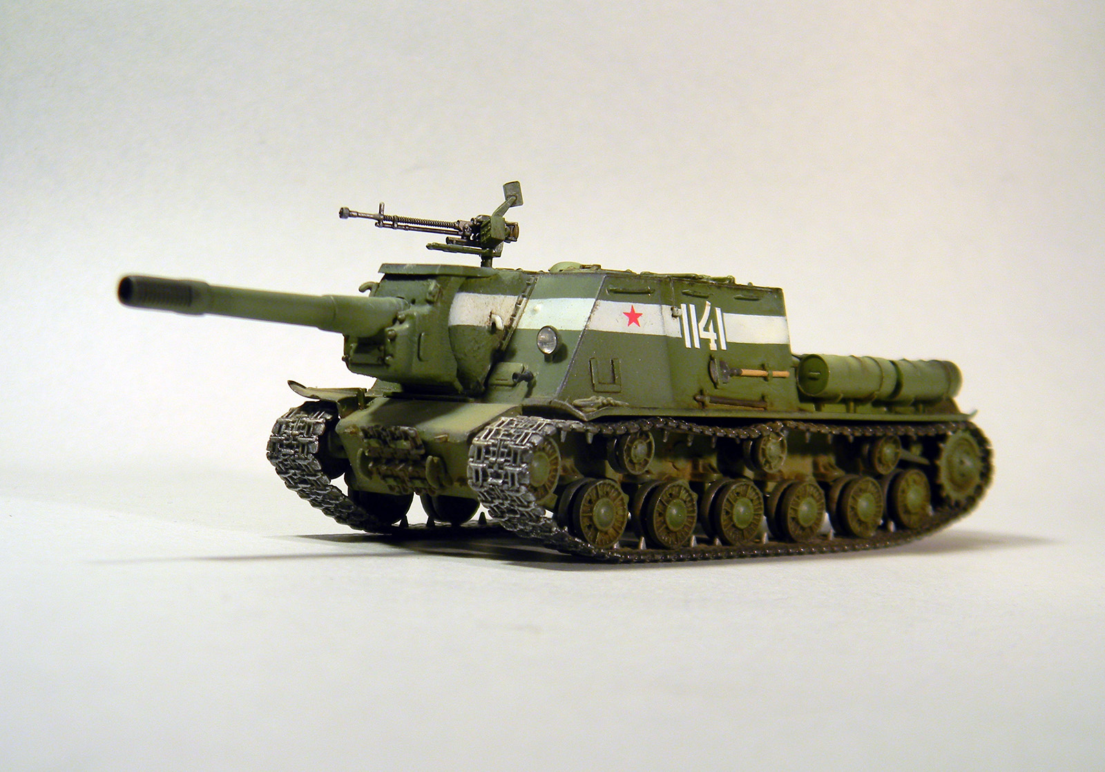 Красить модель я решил под некий сборный образ берлинской Исушки, вдохновившись фото ИСУ, Ис-2 и другой техники с полосами быстрого опознавания для авиации. Конкретной привязки к прототипу - нет, да и цели собрать супер-копийную модель не ставилось.