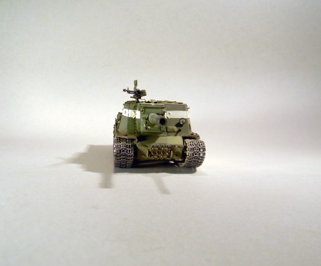 К сожалению не обошлось без косячков - левая гусеница имеет не идеальный провис(не совсем верно изогнул ее, а заметил это только после сборки и финальных фото), да и крайние катки одна из гусениц все же загибает, делая модель "креслом-качалкой",не смотрел.