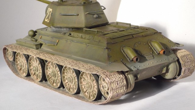 Всем доброго дня. Вот и доделал я наконец то свой затянувшийся Т 34/76. Первый опыт работы с травлением вышел немного комом, но с чего то же надо начинать). Из дополнений: ствол(абер), немного травления, проволоки, иголка от шприца, траки(макет). Краска, смывка - тамия. Пигменты - wilder.