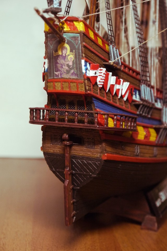 В данном случае ванты режут глаз исключительно своим непонятным цветом, такелаж выполнен в однотонном варианте. Да и паруса слишком ядрено-белого цвета.