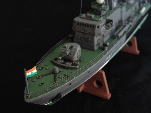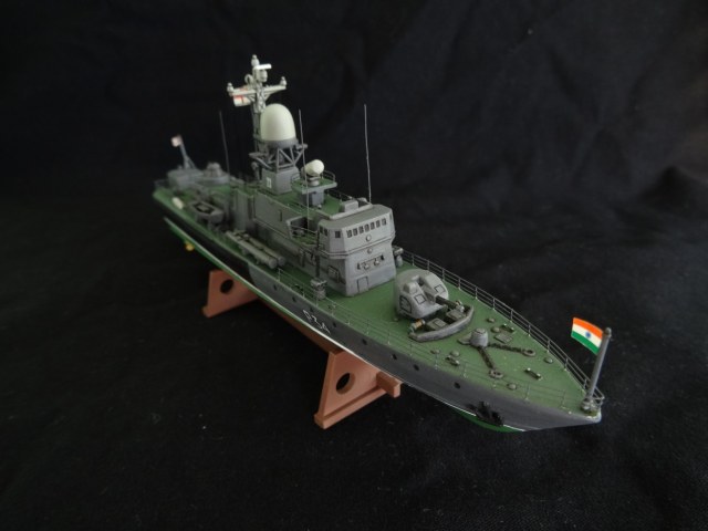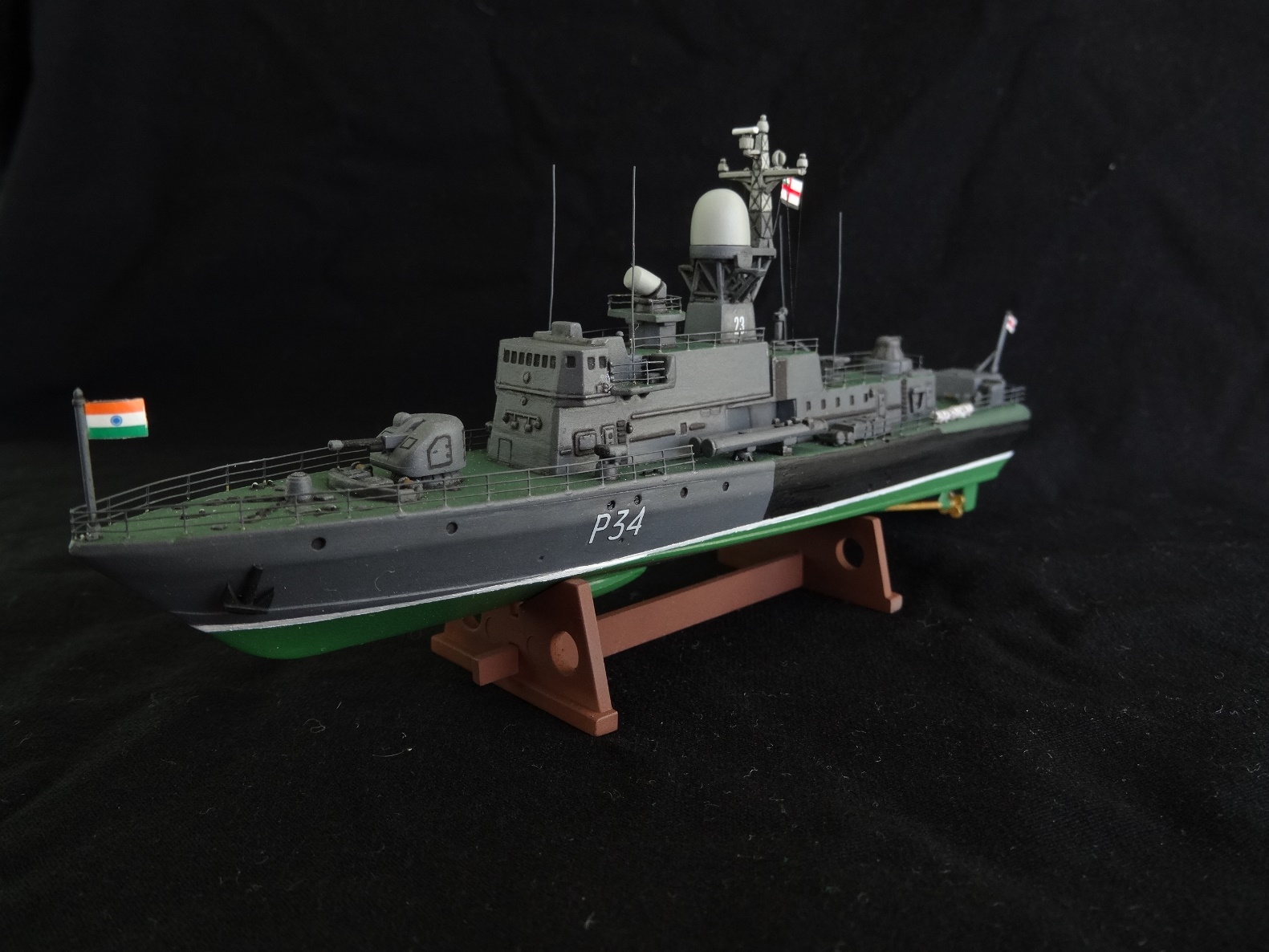 Правда на коробке написано “Athay”, но такого нет в составе ВМС Индии, есть только “Abhay”, но и у него бортовой номер P-33. Производители всё поперепутали.