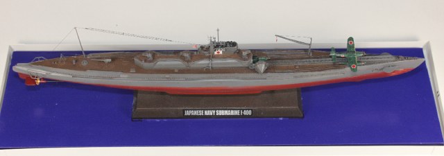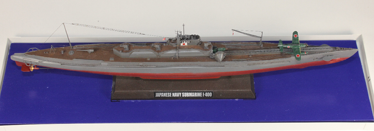 Среди построенных в годы Второй мировой войны для японского Императорского флота кораблей были самые крупные в мире неатомные подводные лодки. Субмарины типа “Sen-Toku” (сокращенно “STo”), стали вершиной развития японского подводного кораблестроения. Кроме мощного торпедного и артиллерийского вооружения они имели еще и три самолета! Первоначально планировалось построить 18 подводных лодок этого типа, однако в 1943 году это число было сокращено до 9 кораблей, из которых начаты были лишь шесть, а завершены всего три. Головной корабль серии “I-400” заложили на верфи в Куре (Kure Kaigun Kosho) 18.01.1943 г. Через год субмарину спустили на воду, и она вступила в строй 30.12 1944 г.