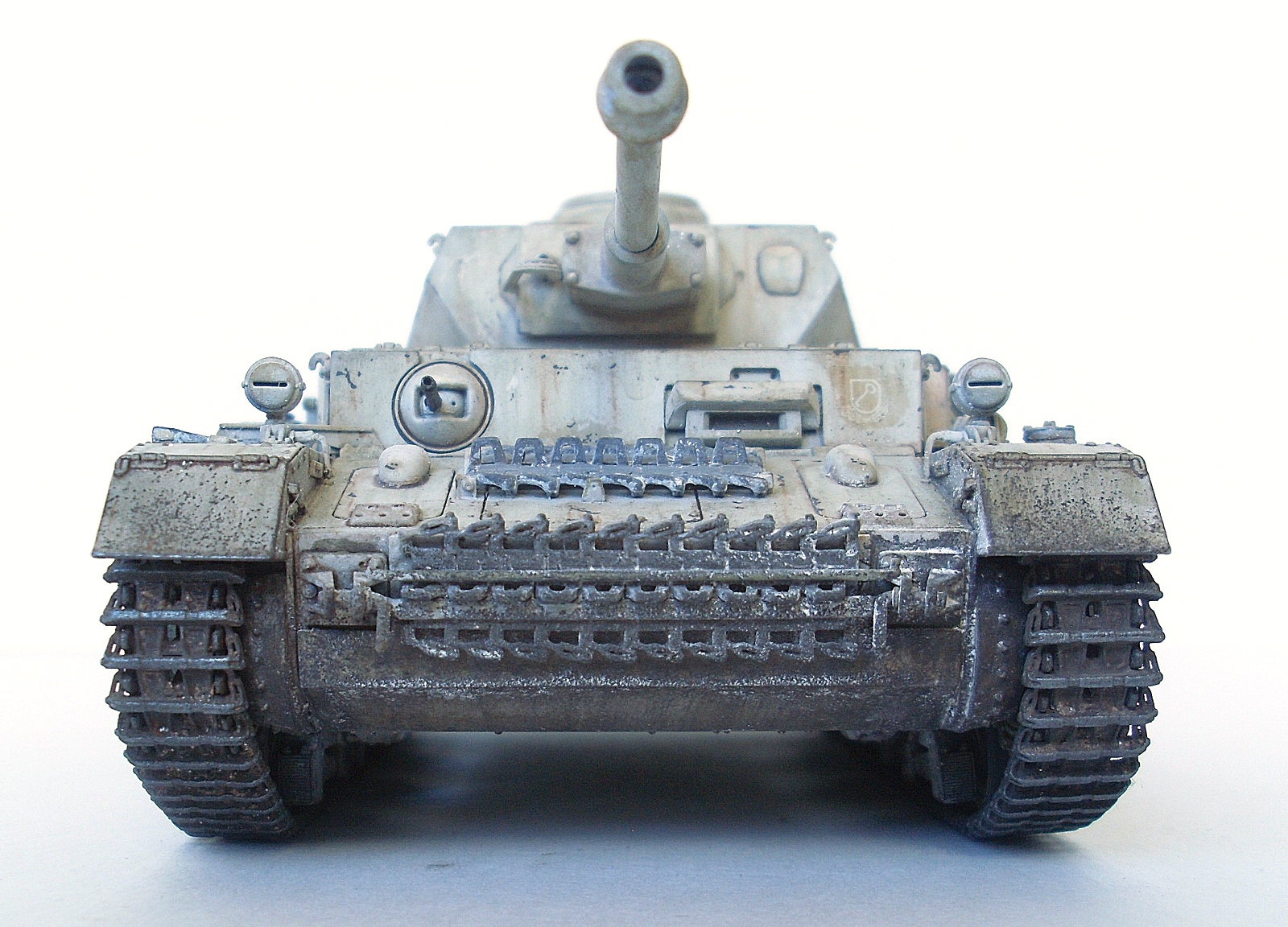 Хороший окрас, реалистично. Траки на лобовой части отливают серебром, но это я так понял при фотографировании или обработке такой эффект создался?