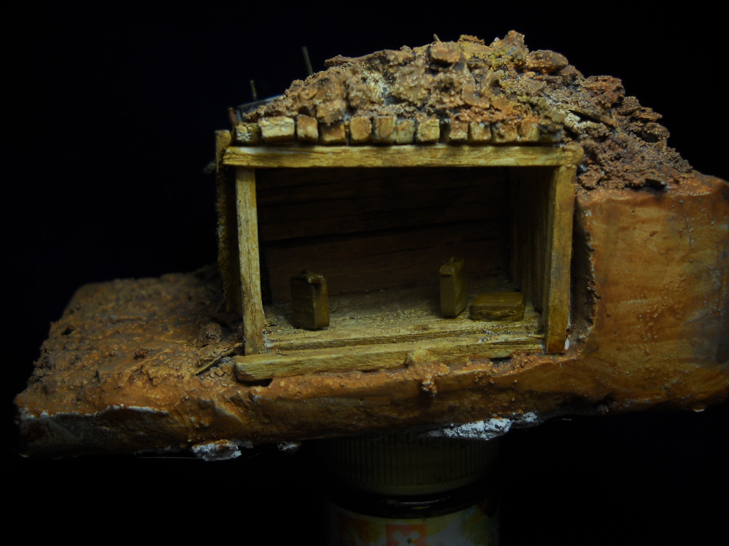 В меру сил воспроизвёл кусочек окопа с подбрустверной нишей для хранения боеприпасов.