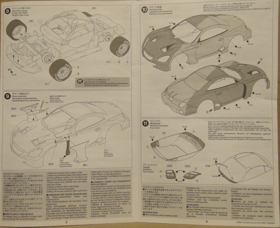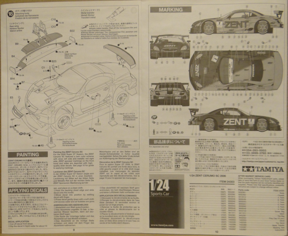 Приветствую Вас дорогие Каропчане и представляю очередной обзор от фирмы TAMIYA автомобиль LEXUS ZENT CERUMO SC 2006. В большой и плотной коробке нам предлагают подробную и понятную инструкцию, днище в отдельной коробочке, салон автомобиля, 2 литника чёрного цвета, 1 литник белого цвета, 1 литник хром, литник остекленения, 2 болтика в отдельном пакетике для крепления днища к салону, резиновые втулки, сетка, маска, 2 декальки, литник с дисками и резина. Вот это всё что находится в нутри. При осмотре утяжин и облоя не обнаружено. В ванночке салона видны следы от толкателей, но и они легко исправимы. Отливка выполнена качественно. В целом набор хороший и интересный.
