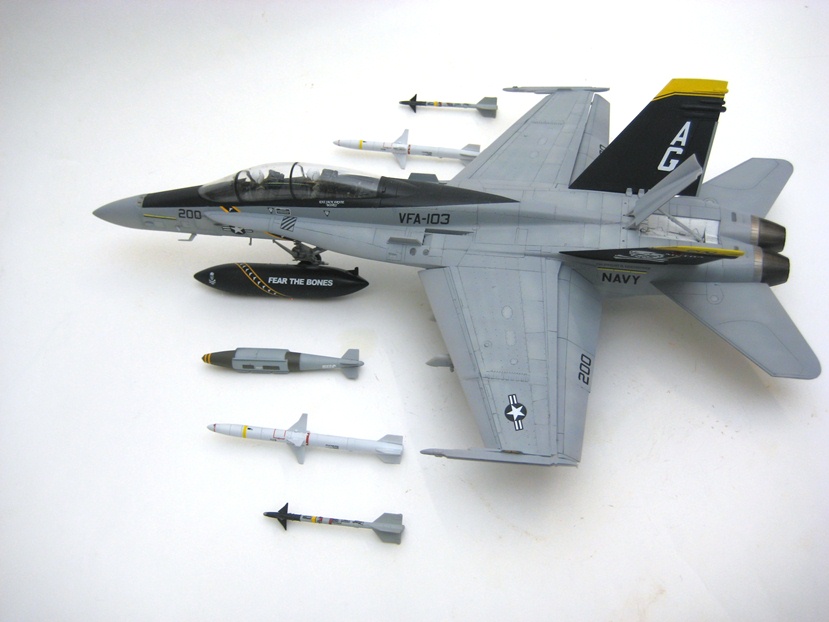 Hasegawa F-18D with F-18F VFA-103 markings. Yes, i do know there is no such plane but as i mentioned it was built on order.