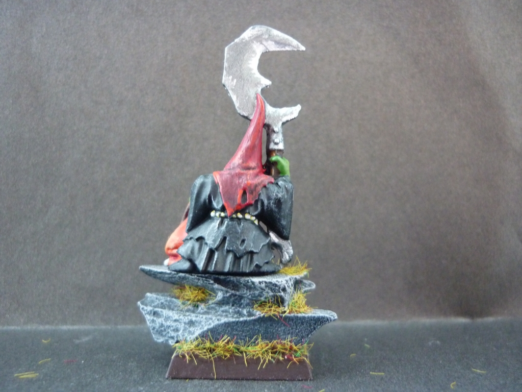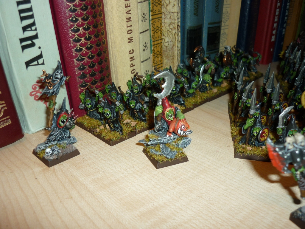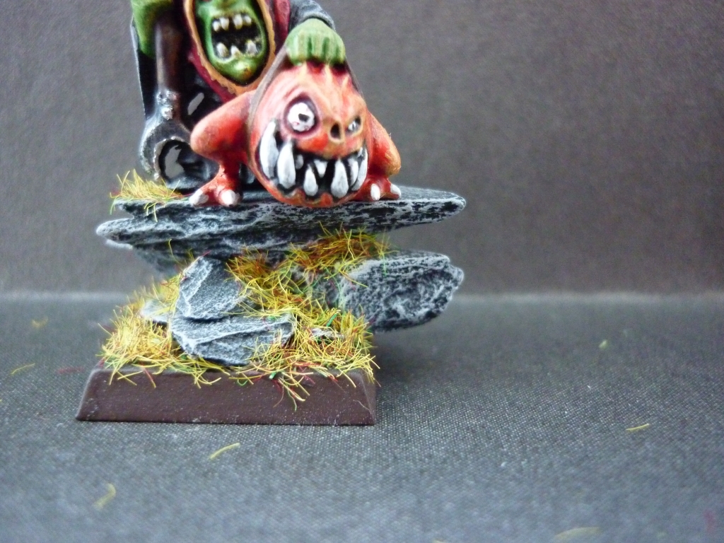 Фигура из набора Warhammer fantasy batles "Битва за перевал черепа". Материал - пластик. Сборка практически отсутствует, т.к. на литнике находились только сам гоблин и его боевой сквиг, которые идеально стыкуются друг с другом. Окрашено акрилом "Valejo" и "Citadel". Подставка оформлена с помощью искусственных камней из набора Citadel "Warhammer basing kit" и флока "Army painter".